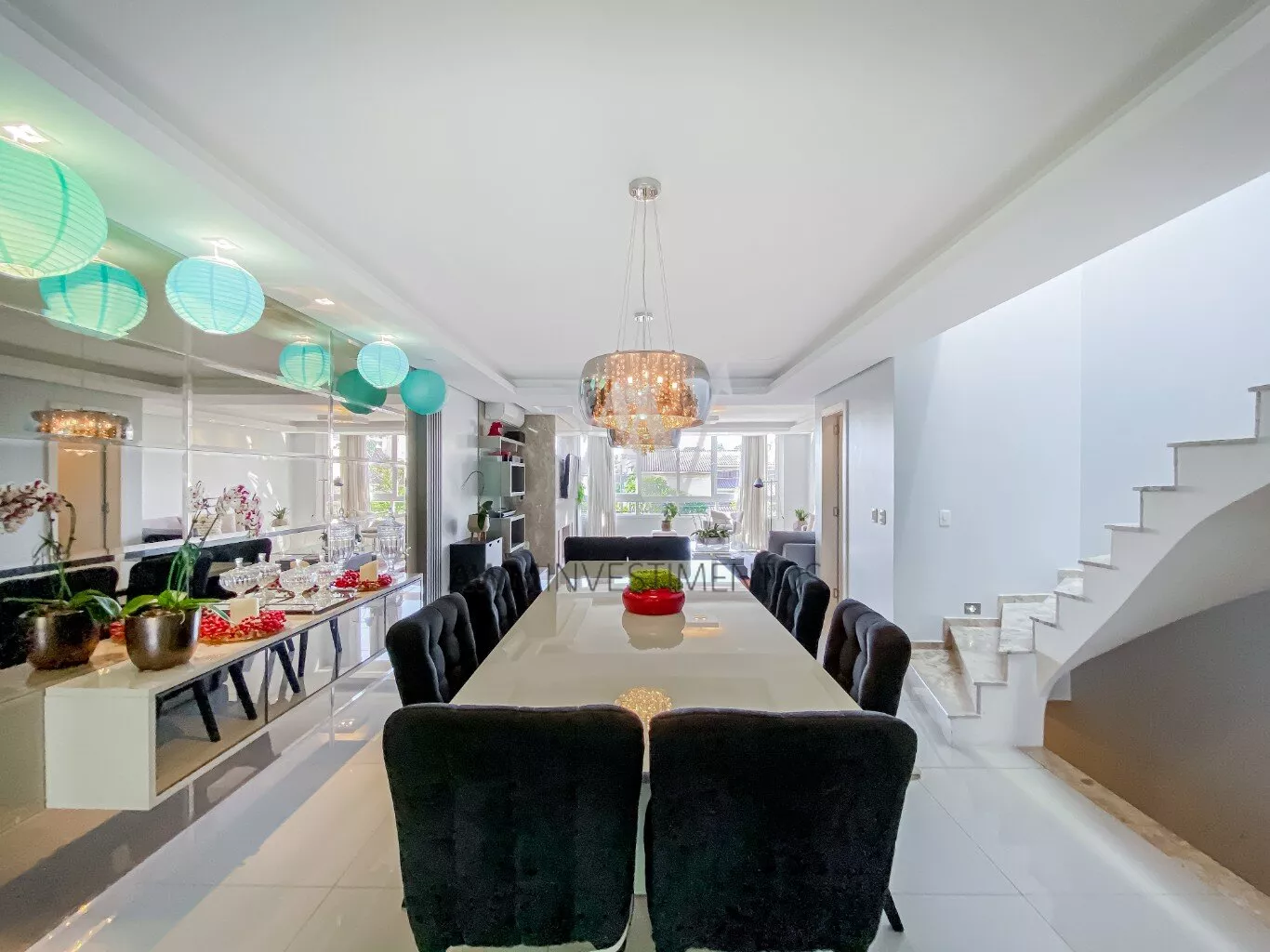 No primeiro pavimento, hall de entrada, amplo living para 3 ambientes, sala de estar com lareira, jardim de inverno, lavabo, sala jantar integrada a copa, cozinha planejada em conceito aberto. Lavanderia, dependência de empregada, banheiro auxiliar.