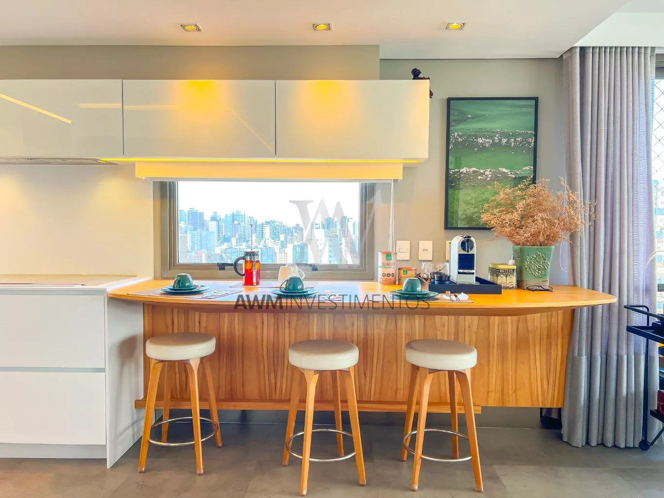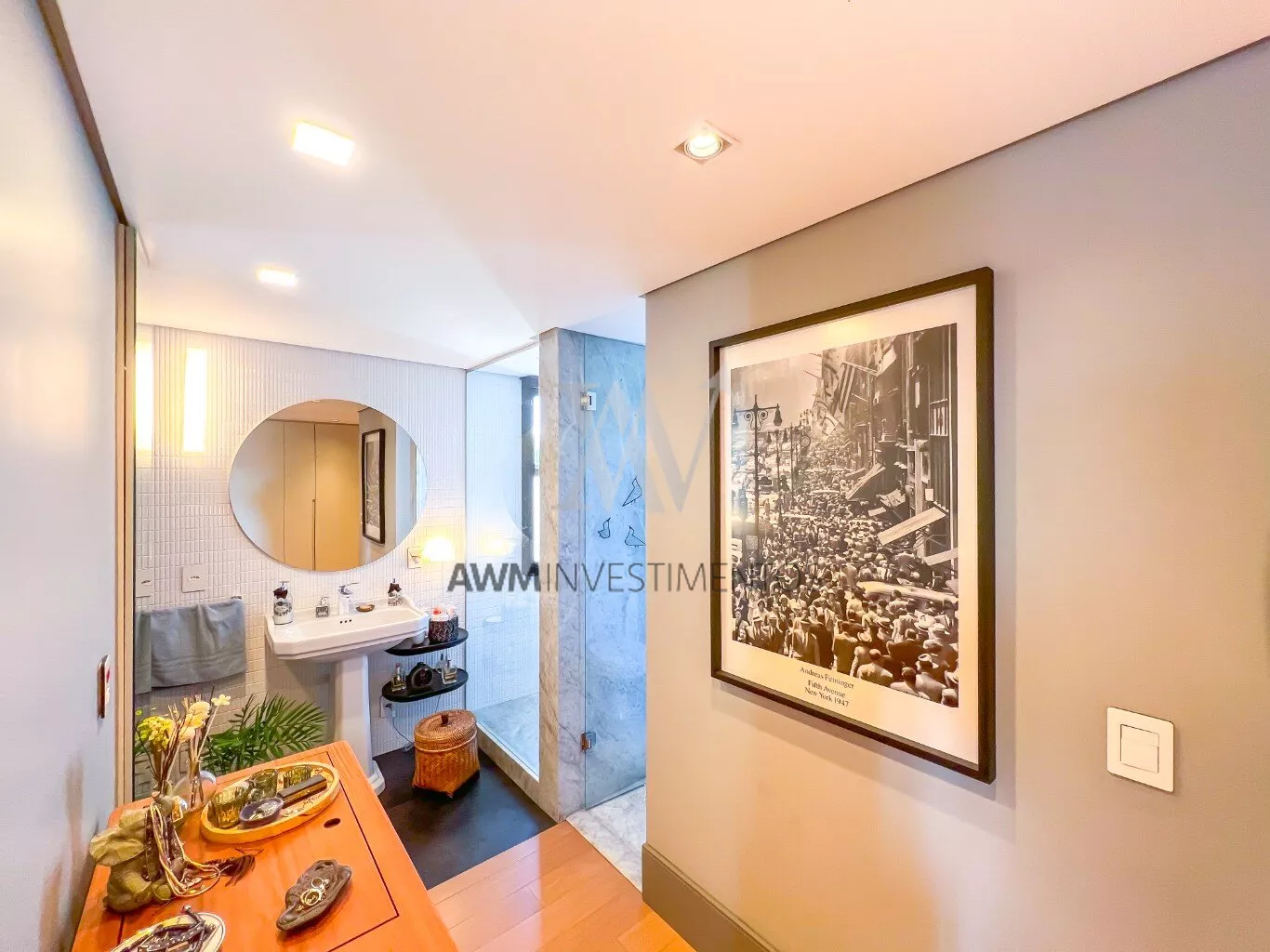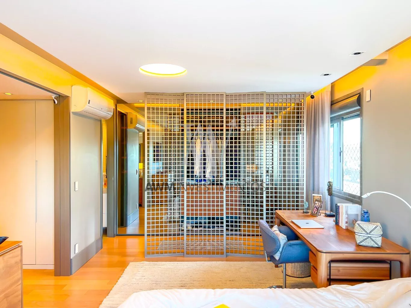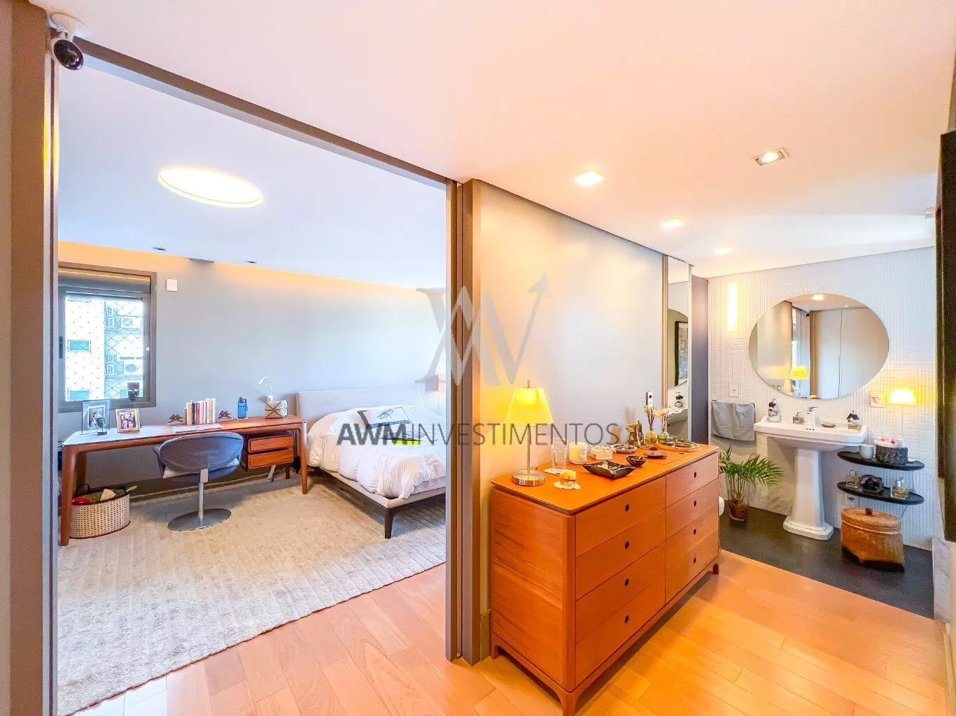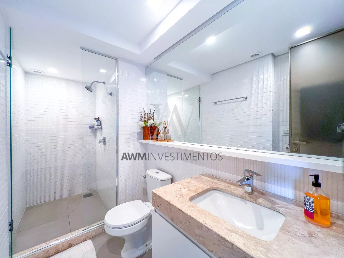 Awm vende apartamento semimobiliado de 145 m² possui um design sofisticado e funcional. Com 3 suítes no projeto original, atualmente ele está adaptado para ter 2 suítes, sendo uma delas a suíte master com closets amplos e banheiros separados para ele e ela, oferecendo uma experiência de conforto e privacidade.