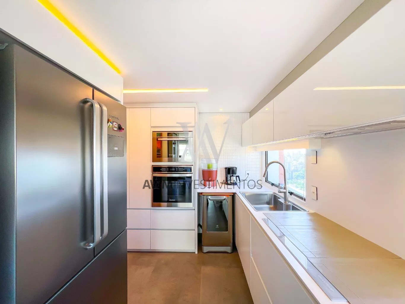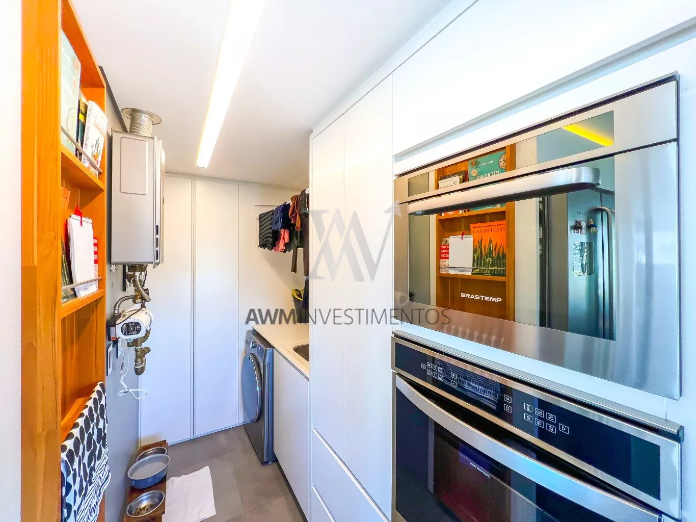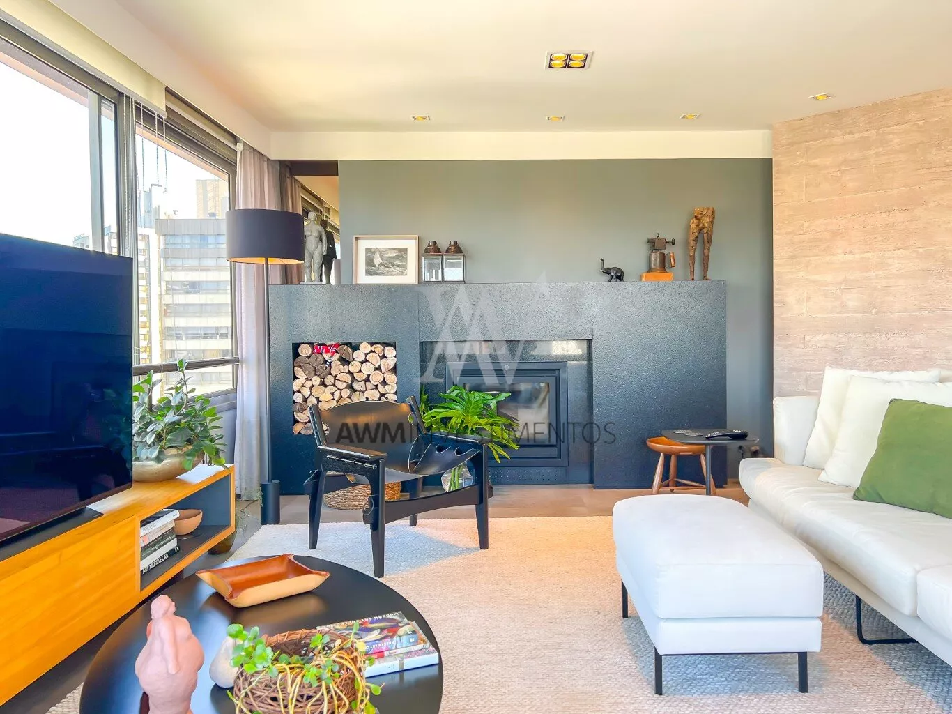 O living é espaçoso, ideal para dois ambientes, e conta com uma aconchegante lareira, criando uma atmosfera acolhedora. O imóvel ainda dispõe de lavabo e uma cozinha americana integrada ao living, permitindo maior fluidez entre os espaços. A área de serviço é separada, garantindo mais privacidade e funcionalidade. O imóvel também conta com 3 vagas de garagem individuais, oferecendo praticidade e segurança. O projeto arquitetônico foi desenvolvido pelo renomado escritório Stemmer Rodrigues, que cuidou de cada detalhe para criar um ambiente sofisticado e bem planejado.
