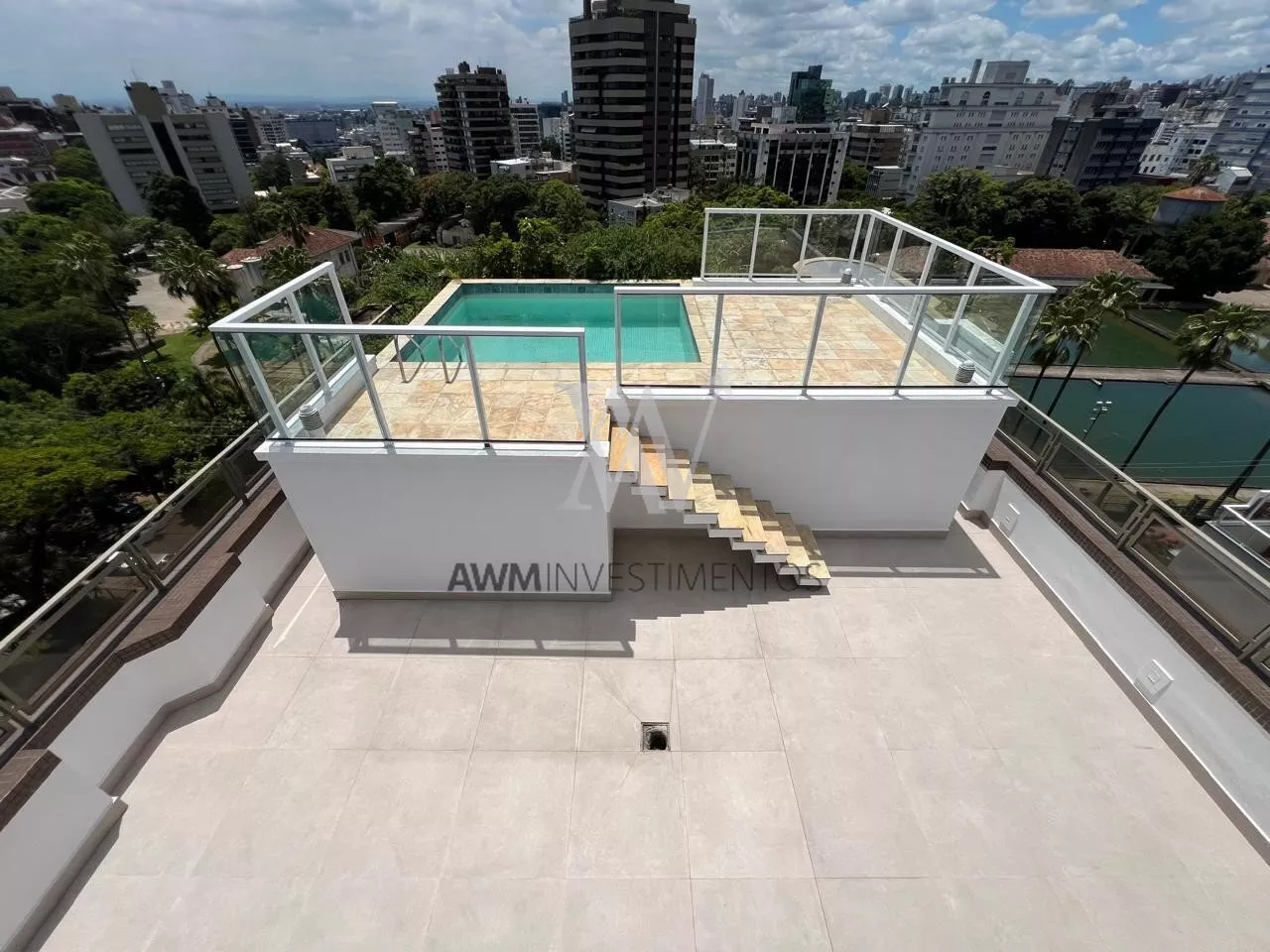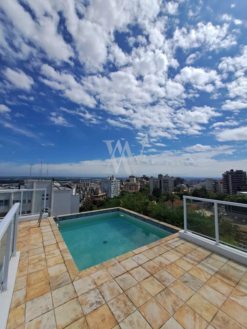 Awm Vende Cobertura Triplex com 4 dormitórios, sendo uma suíte master com closet e banheiro com hidro. Banheiro social com banheira, living com lareira, extensa sacada, gabinete, lavabo, ampla área de serviço com dependência completa. No segundo andar, terraço com churrasqueira, solárium e piscina; No terceiro andar, dormitório com terraço e uma vista incrível. 4 vagas de garagem. Elevador privativo no hall social com chave de acesso. Vista para todos os lados com privacidade e ótima posição solar
