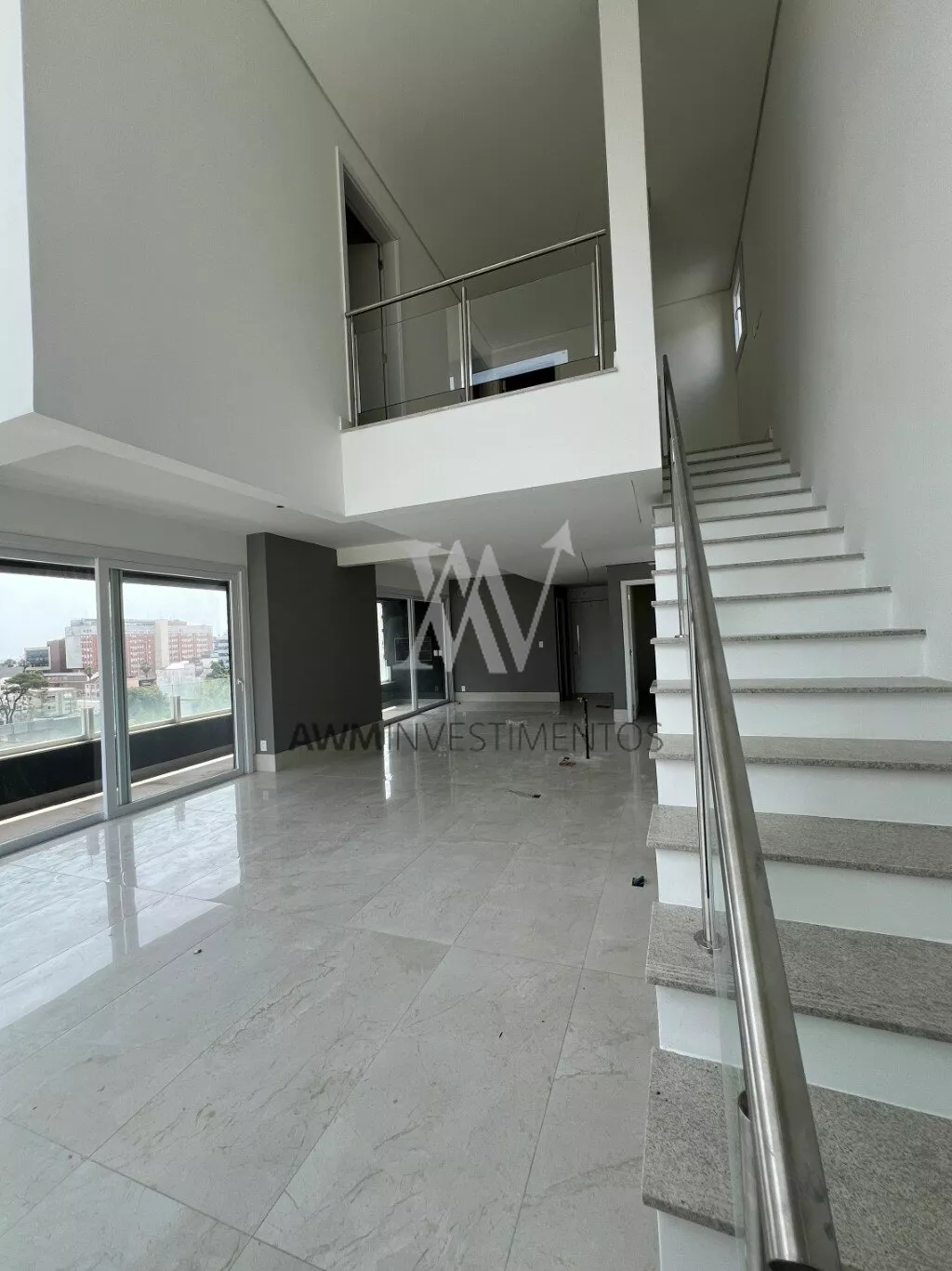 Awm Vende Apartamento duplex de 177m² com 3 suítes, sendo 2 americanas, estar íntimo, living com pé-direito duplo e cozinha americana com 61m², área de serviço fechada com entrada independente de serviço, sacada com 14m² com churrasqueira e vista para o Guaíba. Orientação solar OESTE. Prédio imponente com Hall com pé-direito duplo, portaria inteligente, 3 elevadores, sendo o social com entrada privativa para o apartamento, dois salões de festas mobiliados e equipados, bicicletário e gerador de energia para áreas comuns