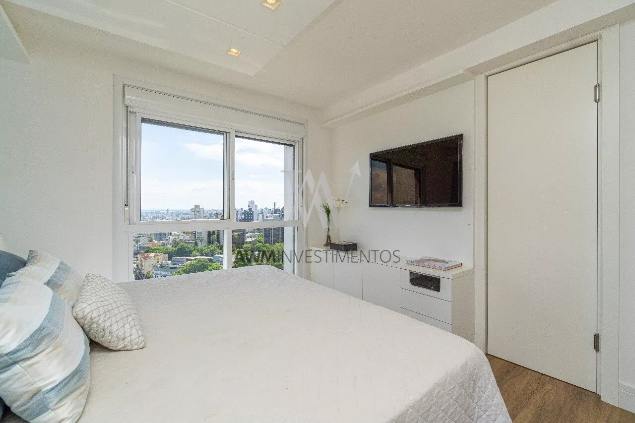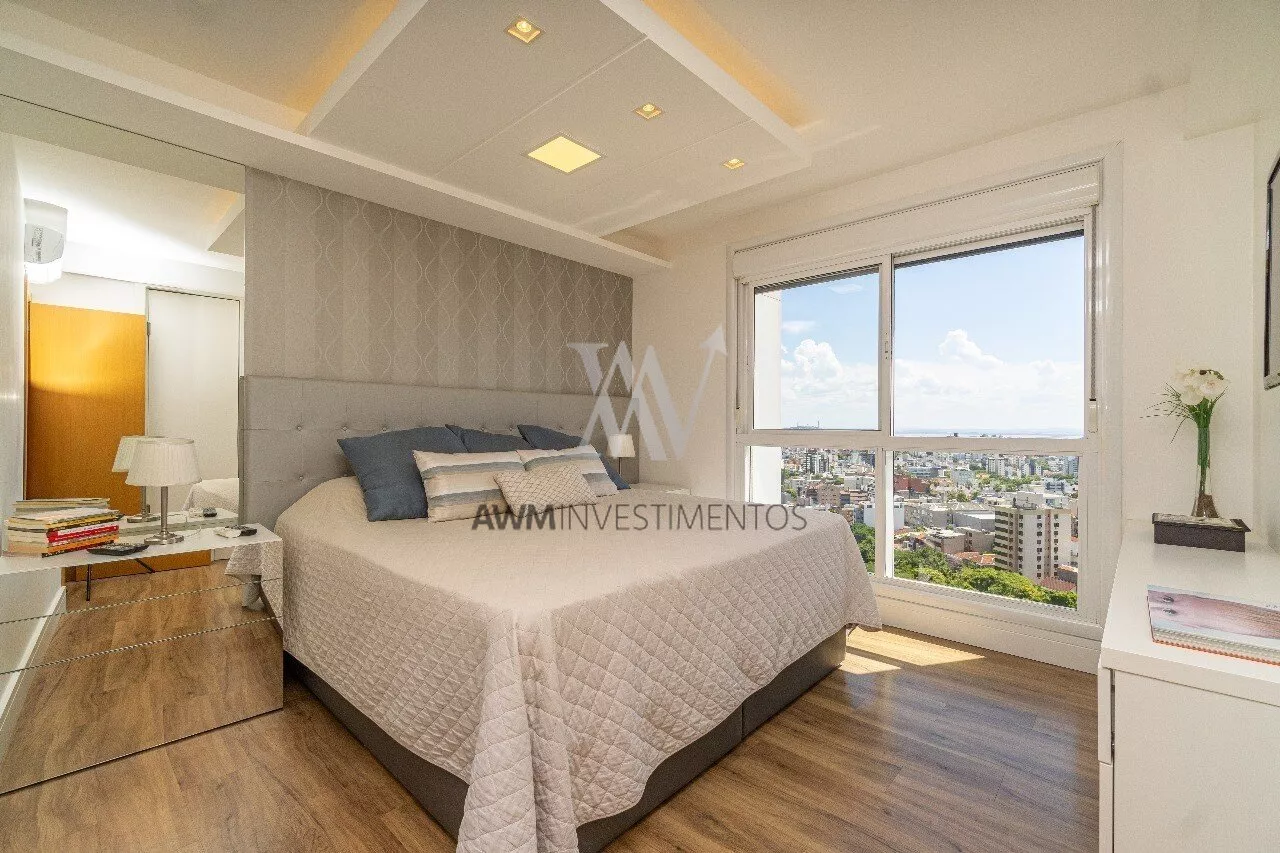 Awm Vende Apartamento de 126m², localizado em um andar alto, com vista panorâmica da cidade e do deslumbrante pôr do sol sobre o Guaíba. O imóvel conta com três suítes espaçosas, sendo uma delas uma suíte master com closet e amplo banheiro. O living extenso com um janelão oferece uma entrada generosa de luz natural e uma vista espetacular, além de contar com lareira e churrasqueira.