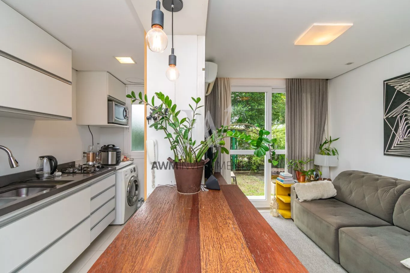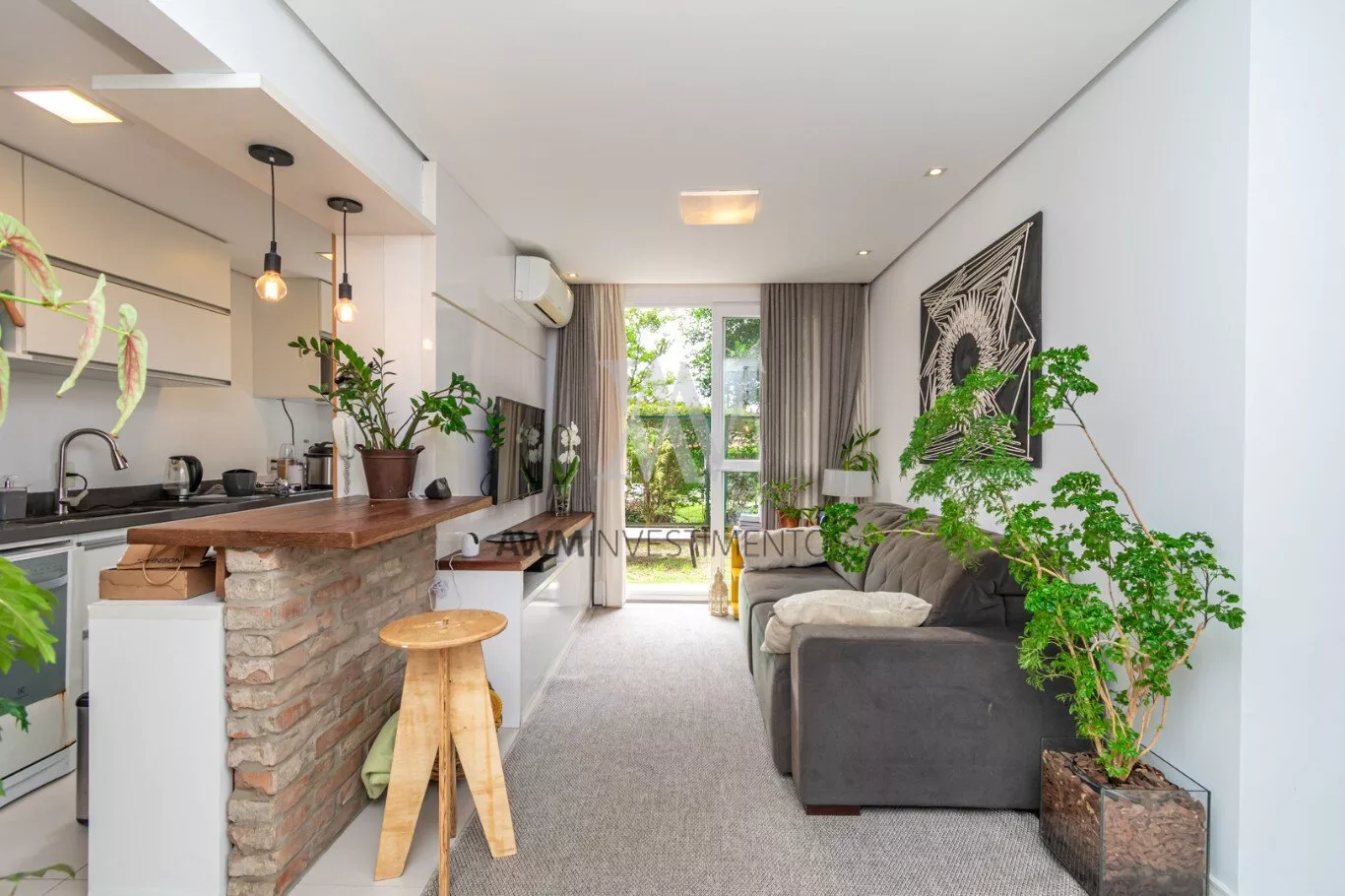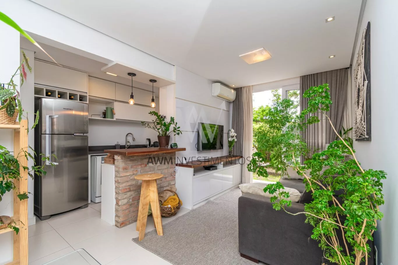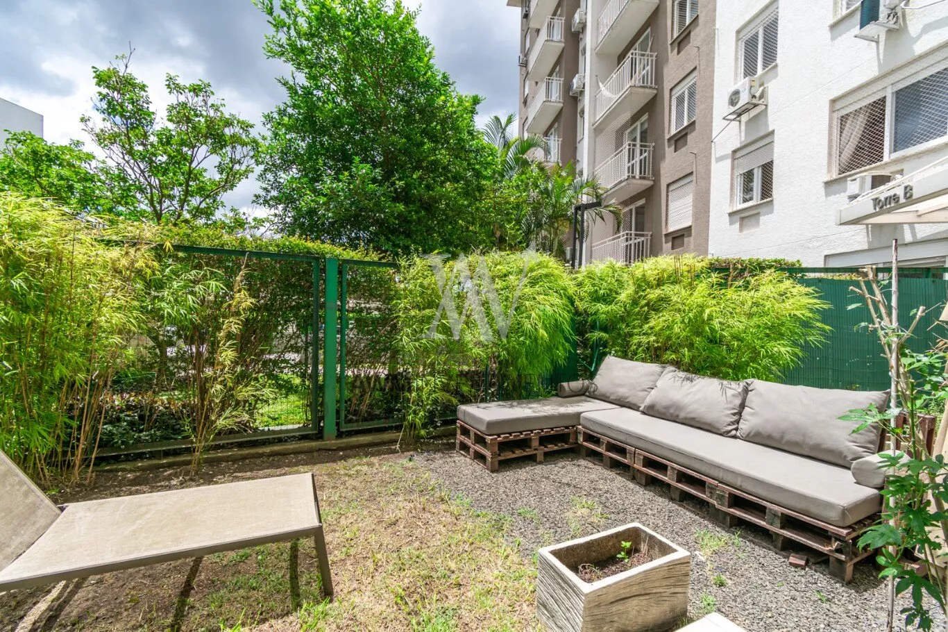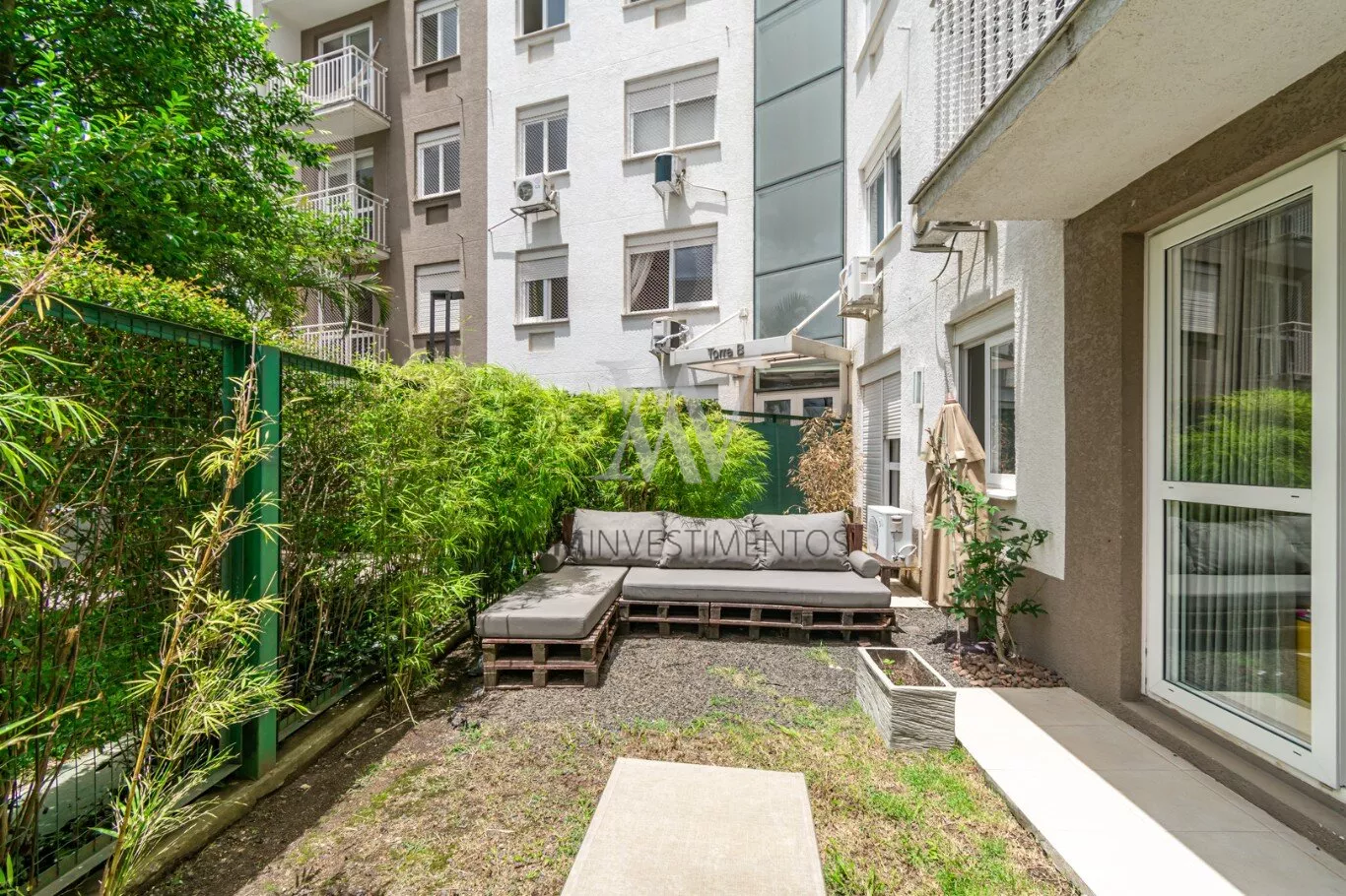Awm Vende Garden, 54m² de apartamento + 38m² de jardim privativos, com 2 dormitórios (1 suíte), e mais 1 banheiro social. 1 vaga de garagem escriturada. O imóvel possui um belo pátio, churrasqueira, gás central, piso porcelanato e móveis planejados sob medida, cozinha em conceito aberto e uma ótima posição solar (manhã).