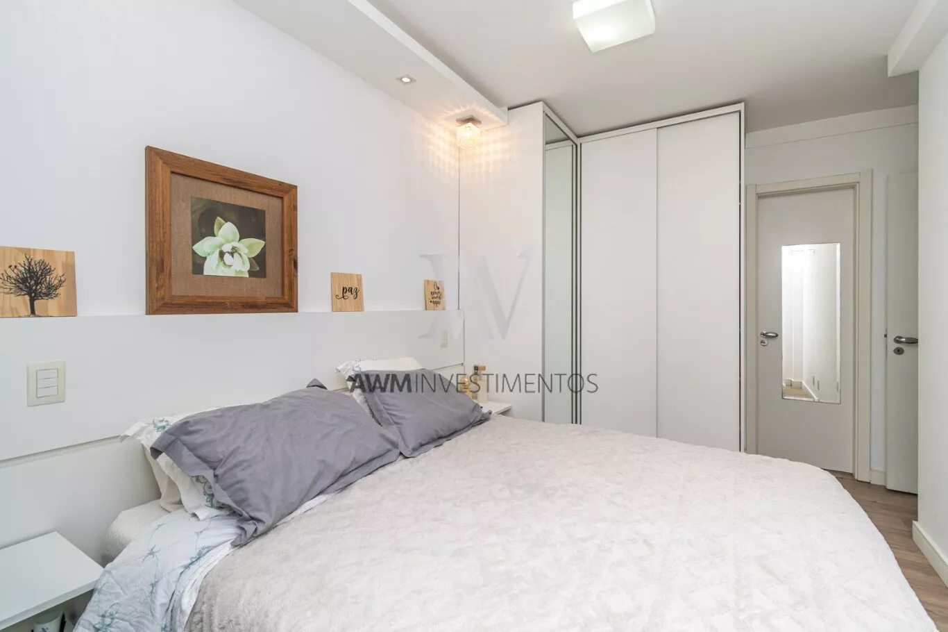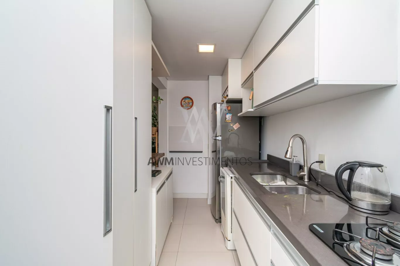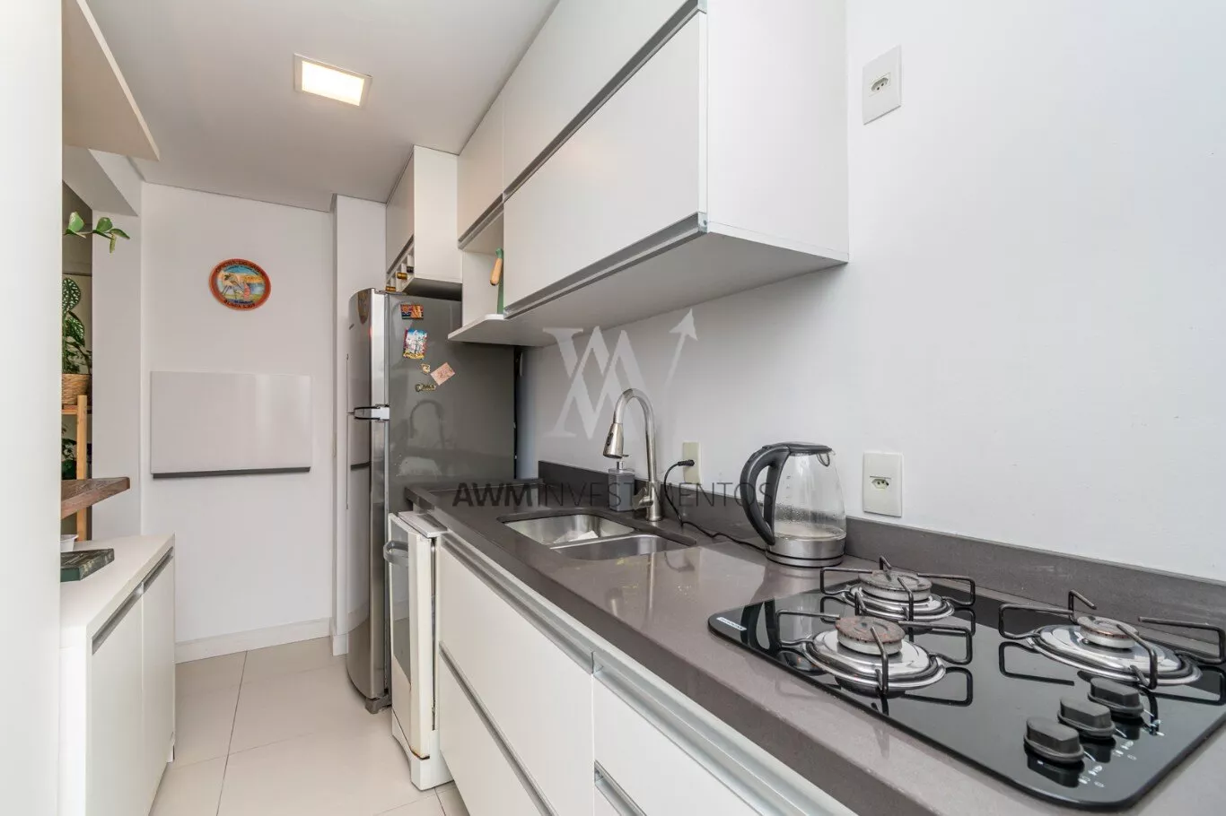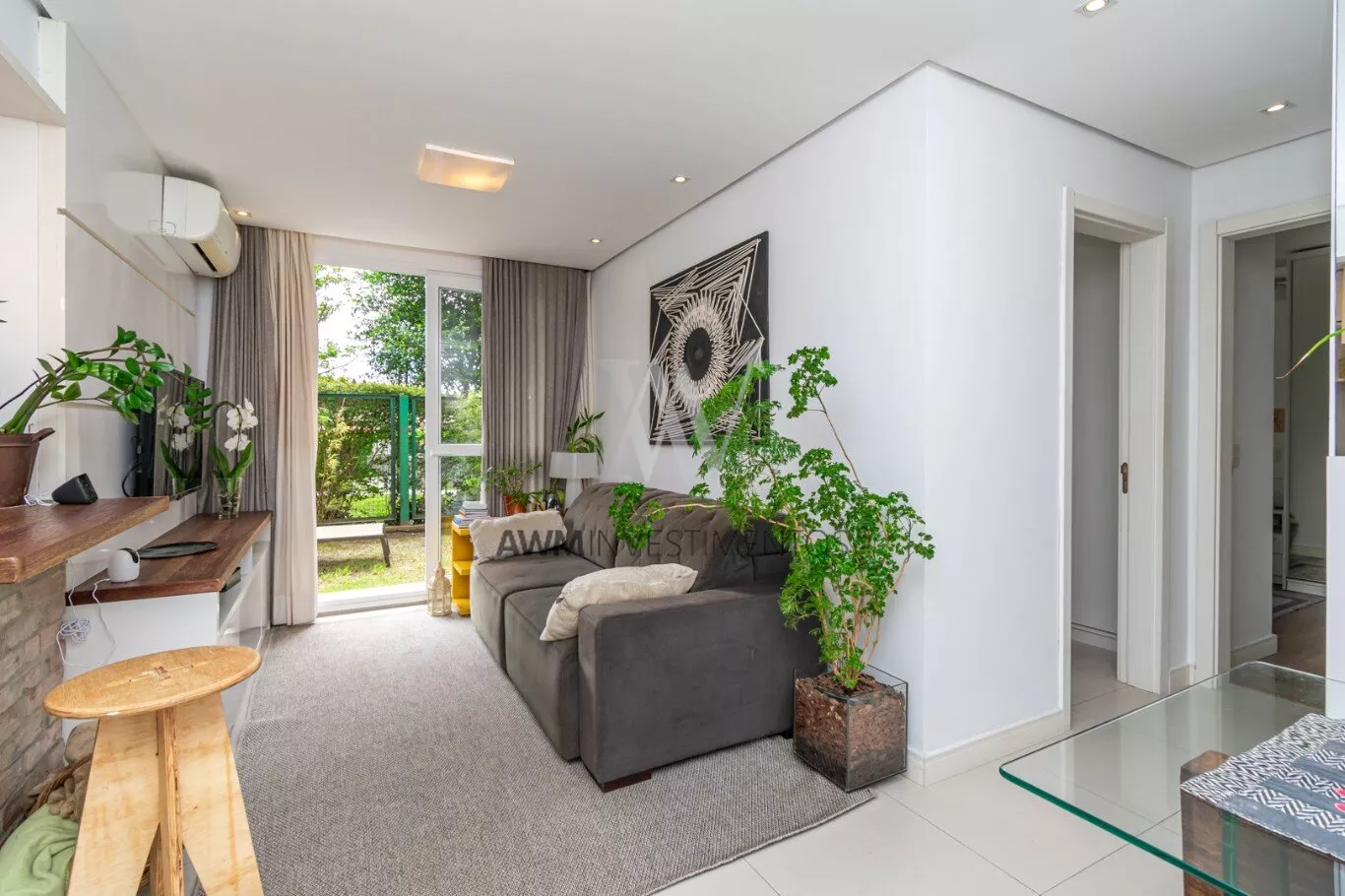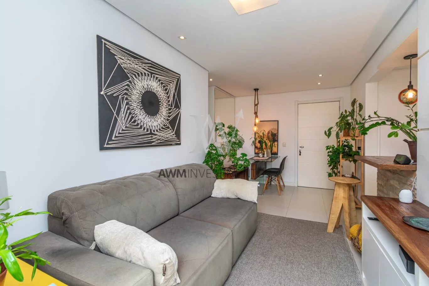 Awm Vende Garden, 54m² de apartamento + 38m² de jardim privativos, com 2 dormitórios (1 suíte), e mais 1 banheiro social. 1 vaga de garagem escriturada. O imóvel possui um belo pátio, churrasqueira, gás central, piso porcelanato e móveis planejados sob medida, cozinha em conceito aberto e uma ótima posição solar (manhã).