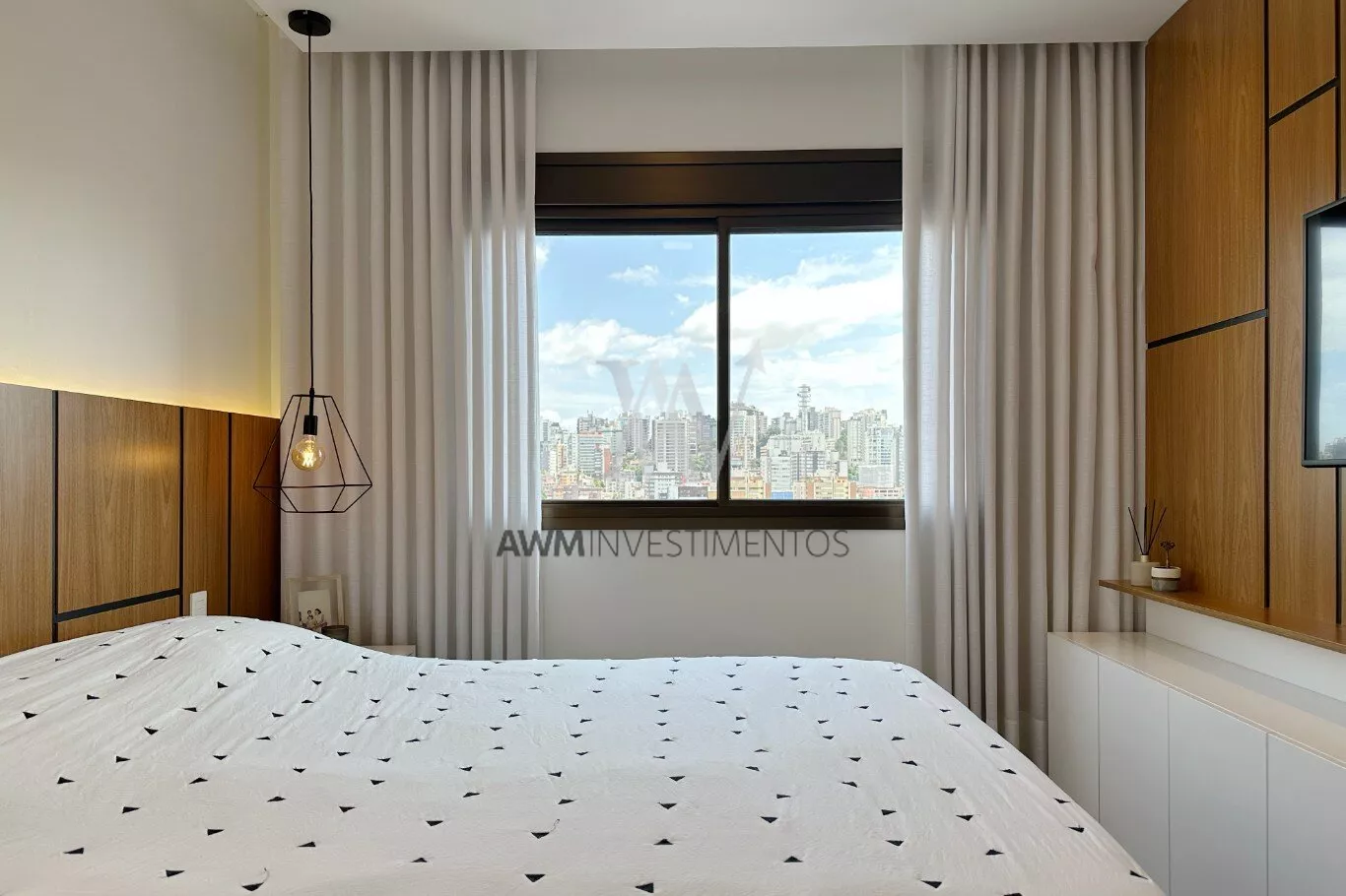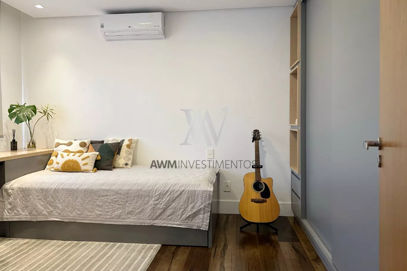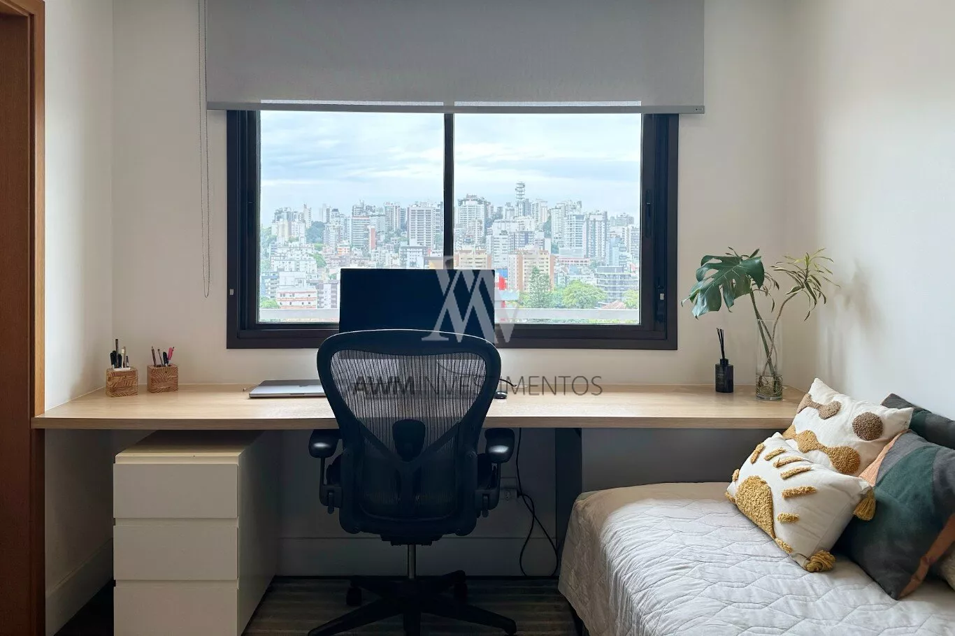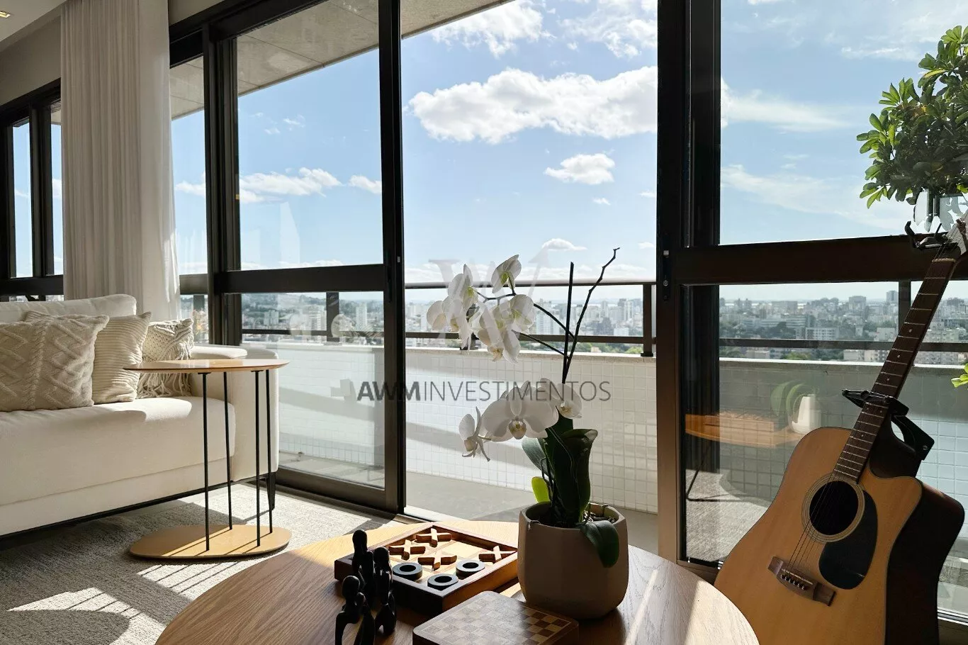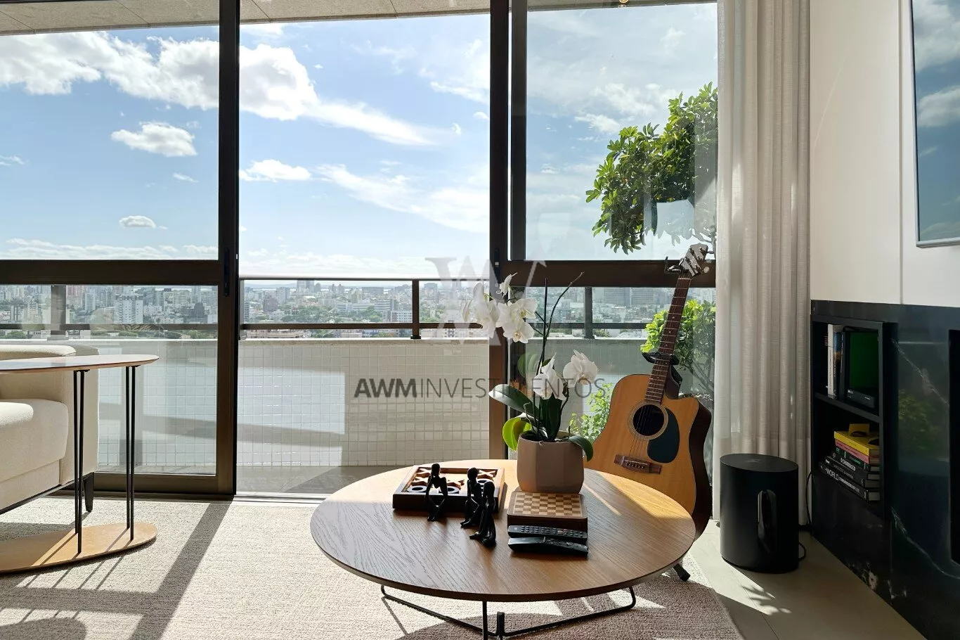 Awm Vende Belíssimo apartamento de 94 m², de frente, finamente decorado por arquiteto, com móveis planejados Todeschini, mesa de jantar Thonart, eletrodomésticos Brastemp e splits já instalados. O living é amplo, com dois ambientes, lareira, lavabo e sacada com vista panorâmica, oferecendo um espaço acolhedor e sofisticado.