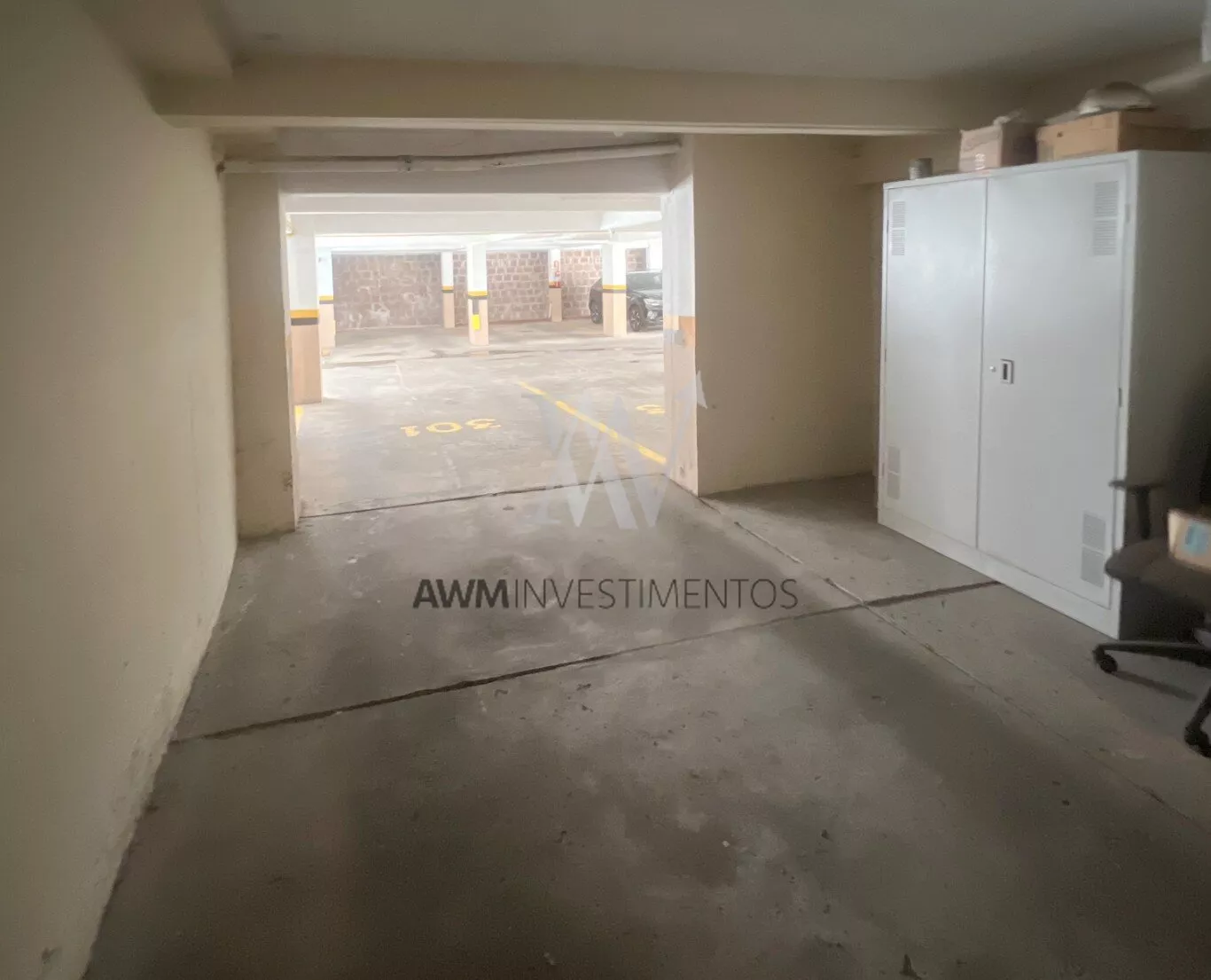 Vaga para dois carros e depósito;