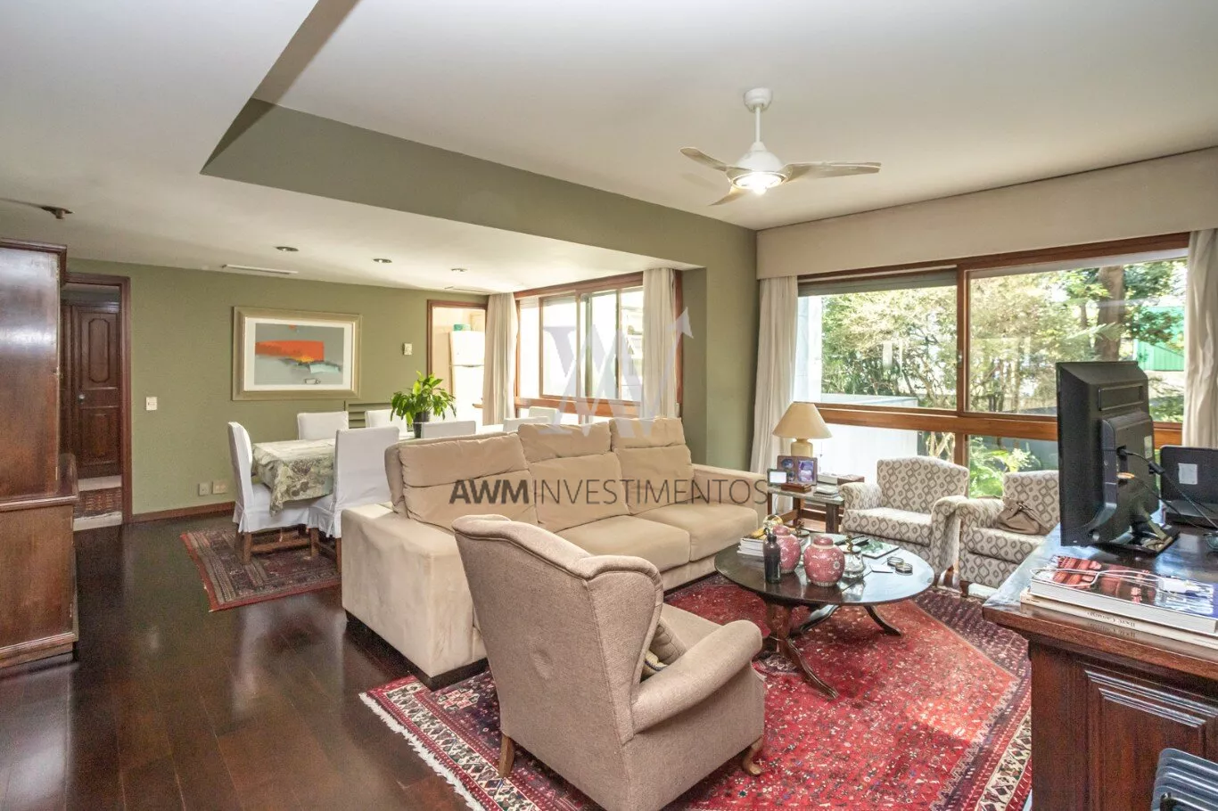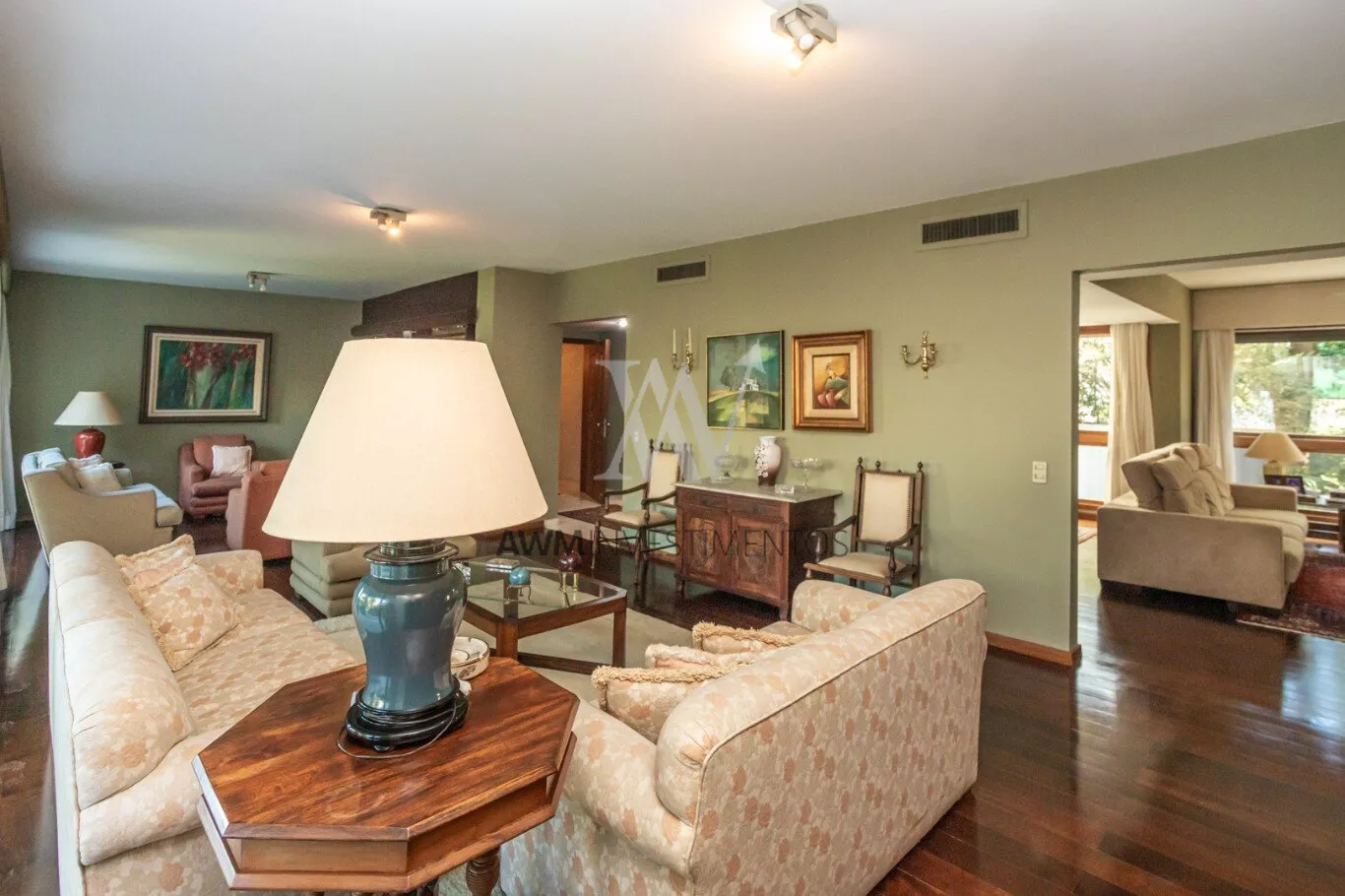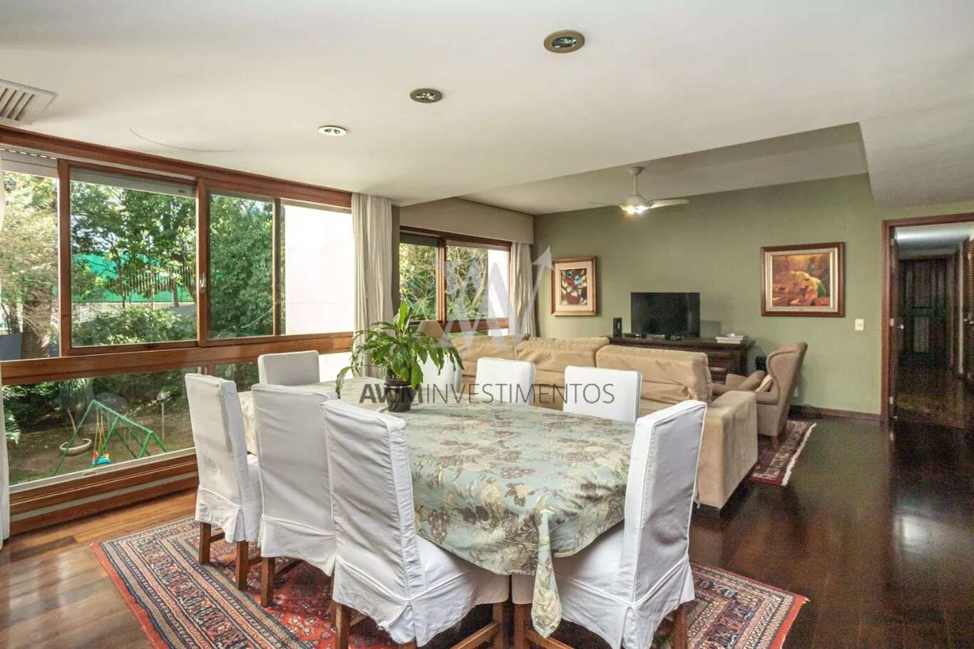 Awm Vende Este apartamento espaçoso oferece uma agradável sensação de casa, com ambientes bem distribuídos e iluminados. São 278m² privativos, distribuídos em três dormitórios, incluindo uma suíte e uma suíte master com closet, que proporcionam conforto e privacidade. O amplo living, dividido em quatro ambientes integrados à varanda, é banhado por luz natural e oferece uma vista acolhedora das copas das árvores, com o sol da manhã iluminando suavemente o espaço. A sala de jantar compartilha essa atmosfera tranquila, com vista para o verde ao redor.