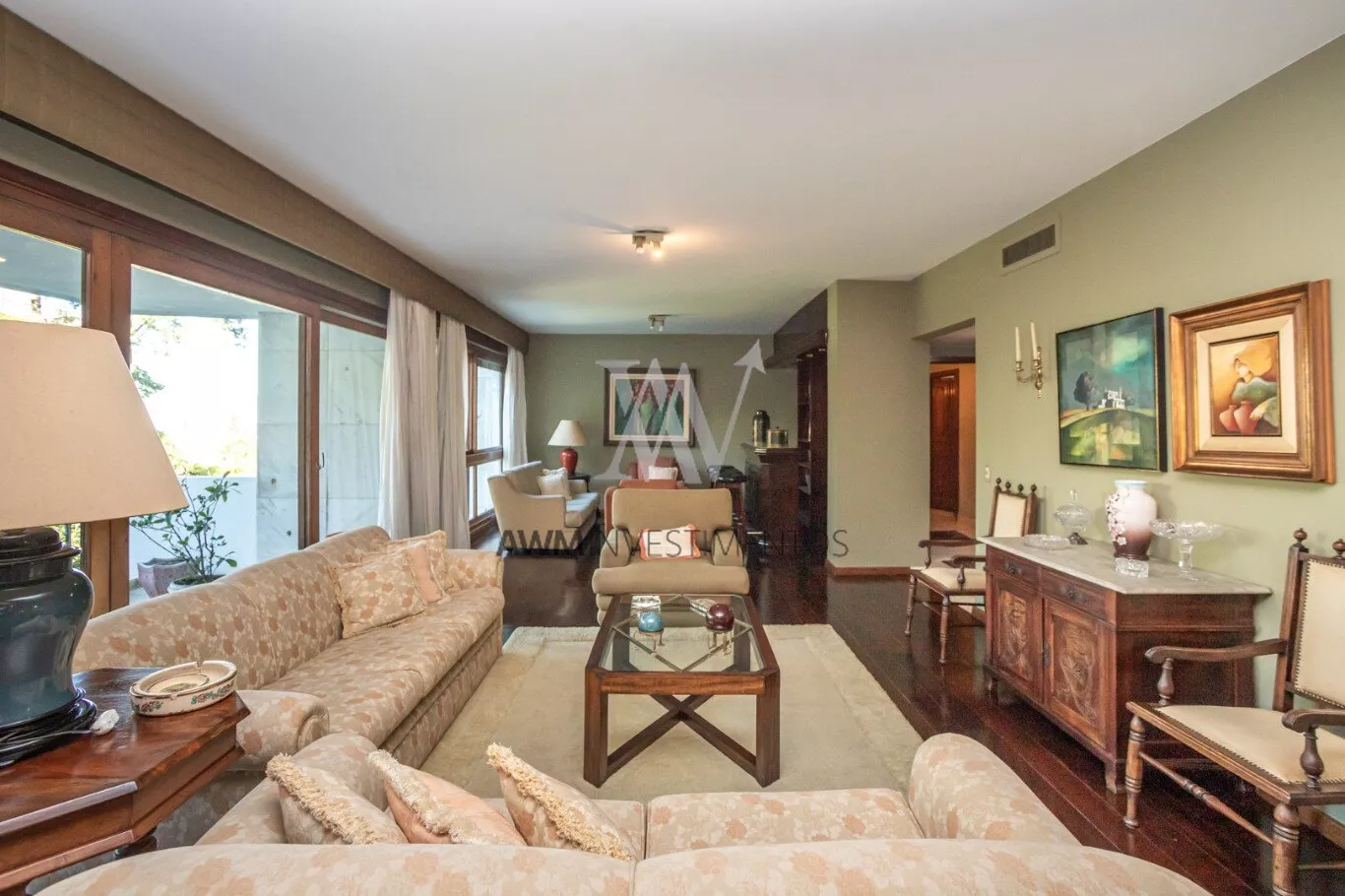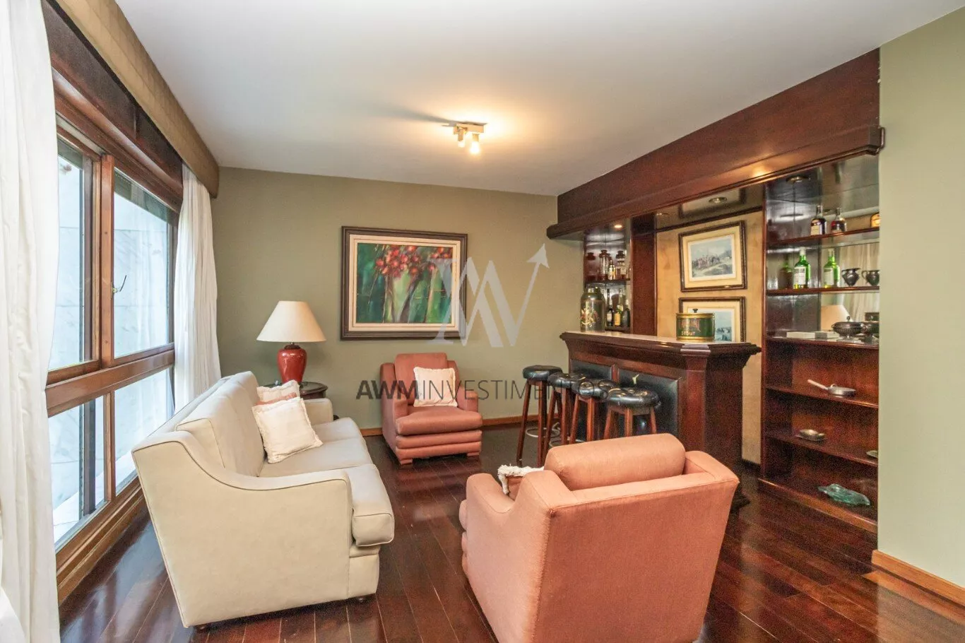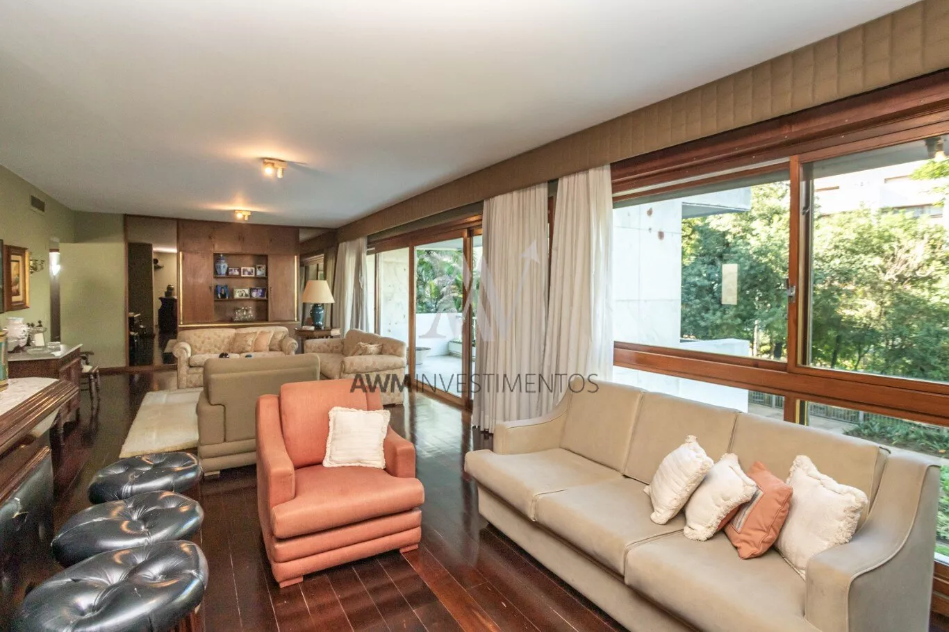 Awm Vende Este apartamento espaçoso oferece uma agradável sensação de casa, com ambientes bem distribuídos e iluminados. São 278m² privativos, distribuídos em três dormitórios, incluindo uma suíte e uma suíte master com closet, que proporcionam conforto e privacidade. O amplo living, dividido em quatro ambientes integrados à varanda, é banhado por luz natural e oferece uma vista acolhedora das copas das árvores, com o sol da manhã iluminando suavemente o espaço. A sala de jantar compartilha essa atmosfera tranquila, com vista para o verde ao redor.