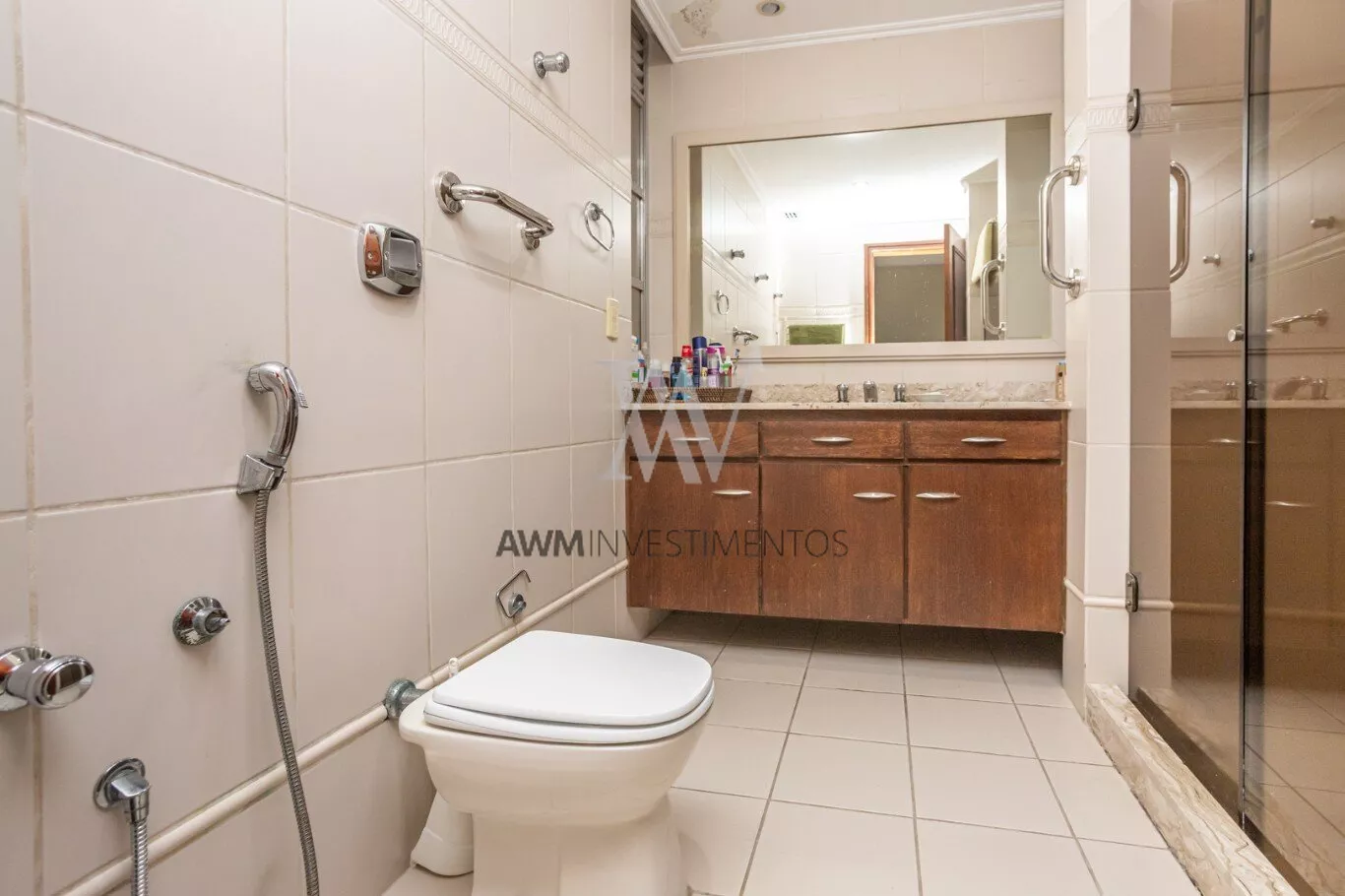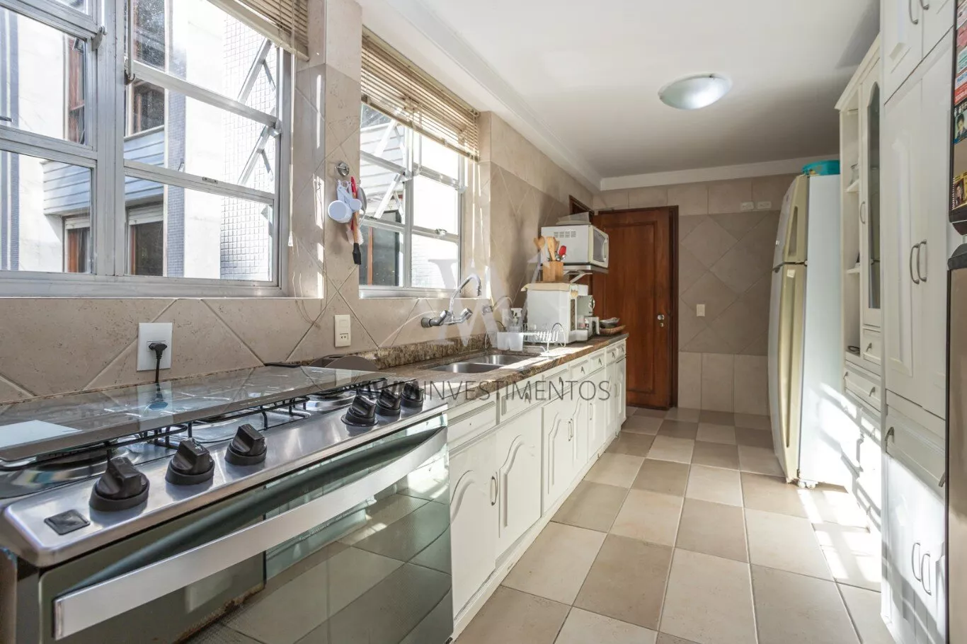 A planta funcional contempla cozinha, lavabo, gabinete, ar-condicionado central, área de serviço e dependência completa de empregada.