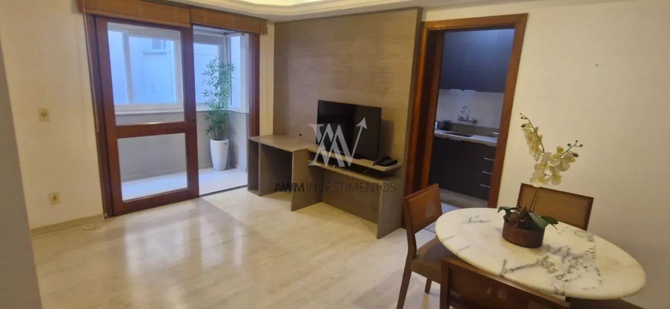 Awm Vende apartamento com 2 dormitórios, 1 suite, distribuídos em living para dois ambientes com sanca em gesso e iluminação led, sacada fechada e churrasqueira, com acesso à cozinha sem precisar passar pelo living, cozinha com lavanderia separada, área de circulação, banheiro social, Fica todo mobiliado, com a cozinha e lavanderia equipadas, duas tvs, toda a iluminação, as cortinas do living e da sacada e os aparelhos de ares condicionados. Total privacidade e muito silencioso, tendo as janelas de pvc termo acústicas com vidros duplos. Aberturas em madeira nobre e a porta de entrada sendo termo acústica, antifurto e anti fogo.
