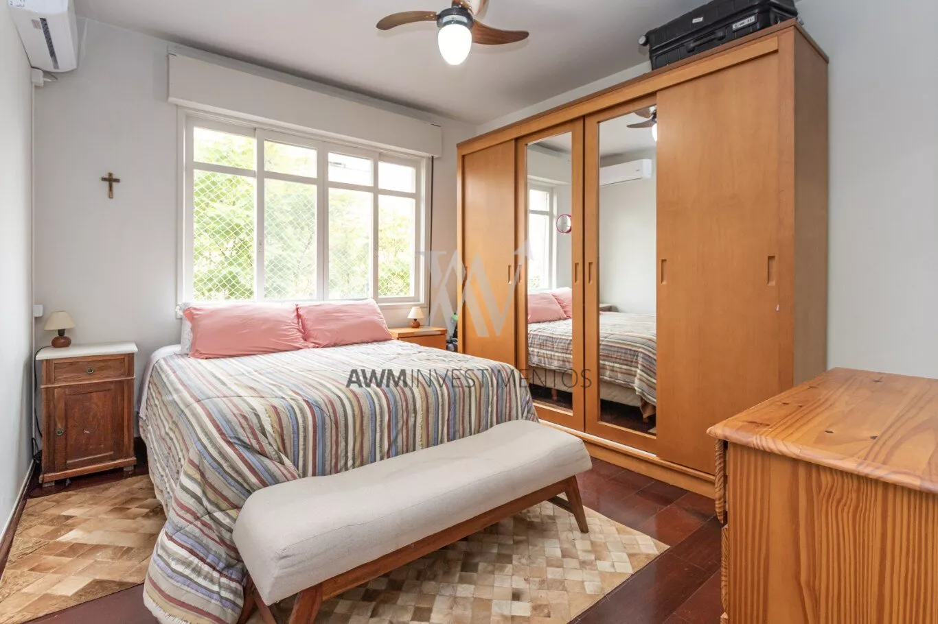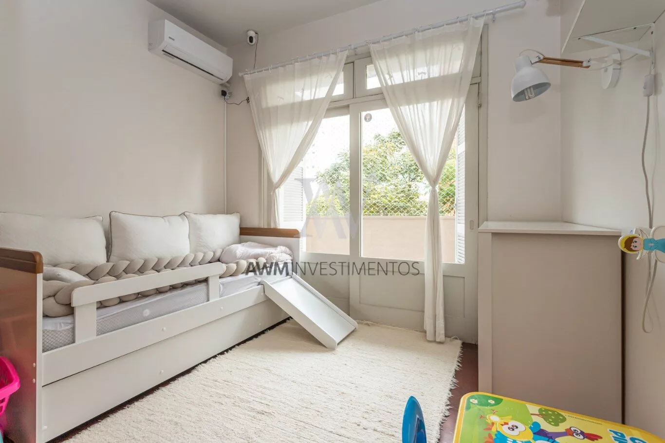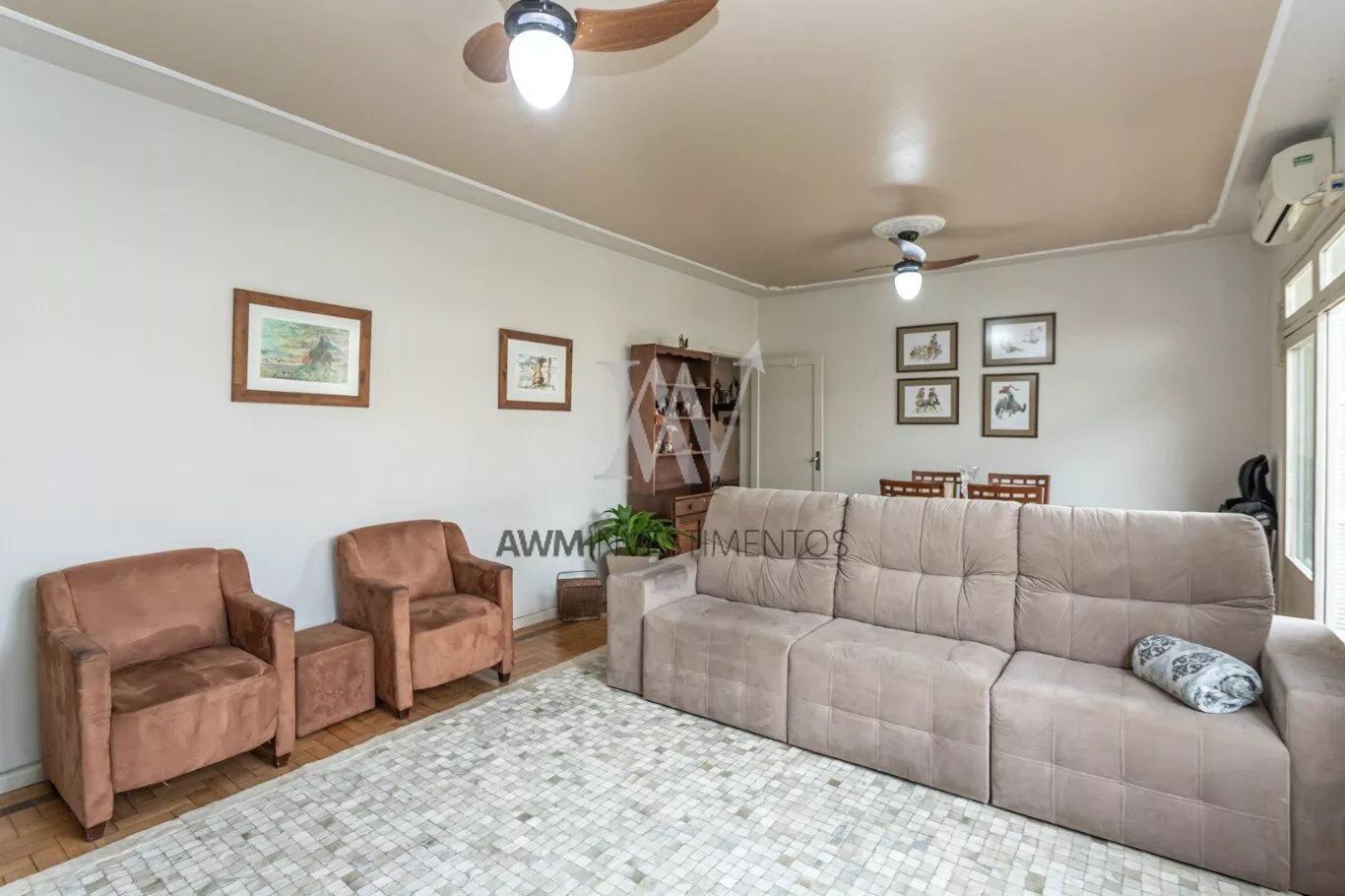 Awm Vende apartamento de 110 m² é uma excelente opção para quem busca conforto, luminosidade e boa localização. Localizado em uma esquina tranquila, o imóvel conta com janelas amplas que proporcionam excelente entrada de luz natural, tornando todos os ambientes bem ensolarados e ventilados. O living é espaçoso, com dois ambientes e acesso a uma sacada, ideal para momentos de convivência. São três dormitórios de bom tamanho, sendo um deles uma suíte; um dos quartos conta ainda com sacada privativa. A cozinha é funcional e bem distribuída, com área de serviço separada e banheiro auxiliar, garantindo praticidade no dia a dia. O apartamento já conta com splits instalados na sala e nos dormitórios, oferecendo maior conforto térmico.