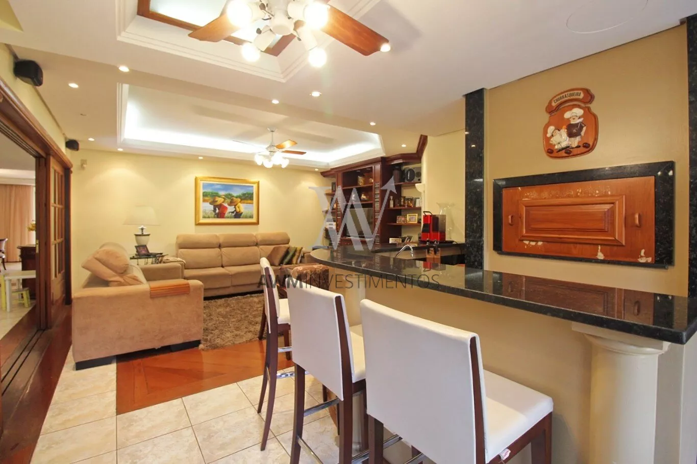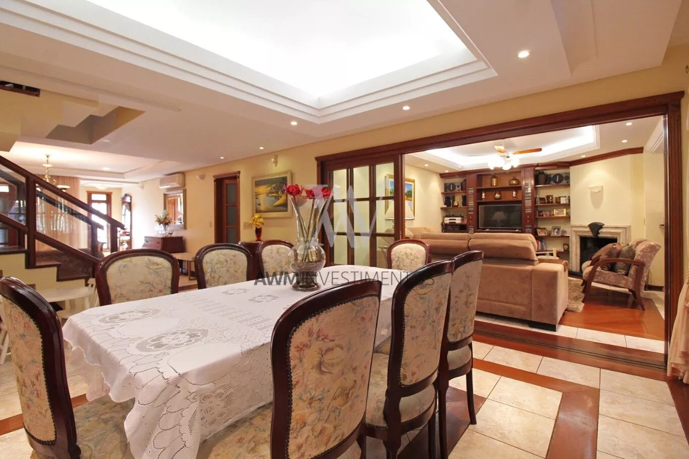 Awm Vende casa 4 amplos Dormitórios, sendo 1 Suíte- Suíte Master c/Closet e Banheiro c/Cuba Dupla, Box e Banheira- Banheiro dos demais dormitórios c/Cuba Dupla e Banheira- Sacada Terceiro piso:- Gabinete- Amplo Depósito100% mobiliada piso:- Hall de Entrada- Estar Social- Sala de Jantar- Estar Íntimo com Lareira; Lavabo- Ambiente de Churrasqueira- Salão de Festas- Ampla Copa Cozinha- Quarto de Empregada; Banheiro de Empregada- Lavanderia- Garagem p/estacionar 4 carros- Pátio Social c/Jardim (com espaço para piscina)-