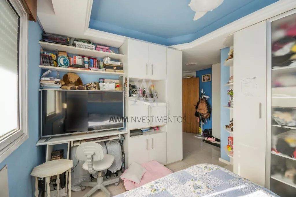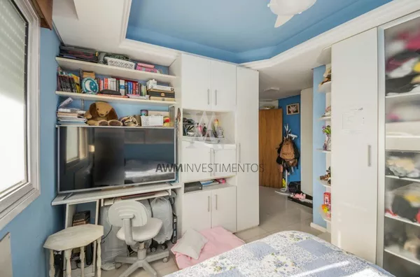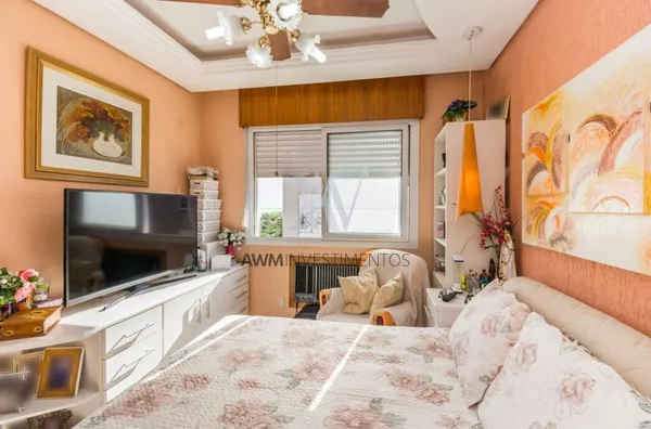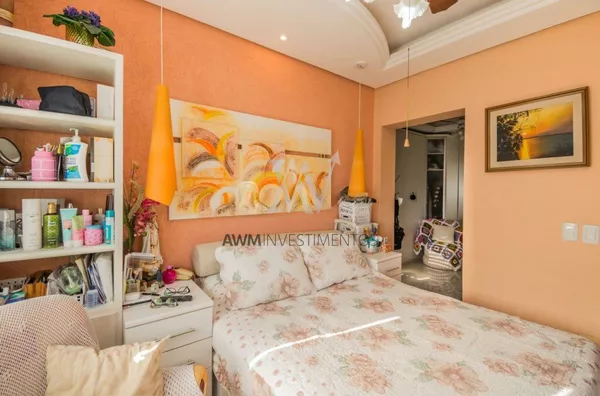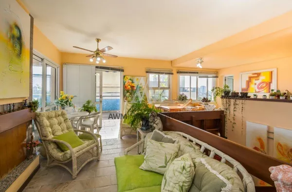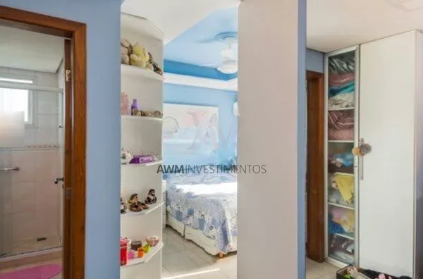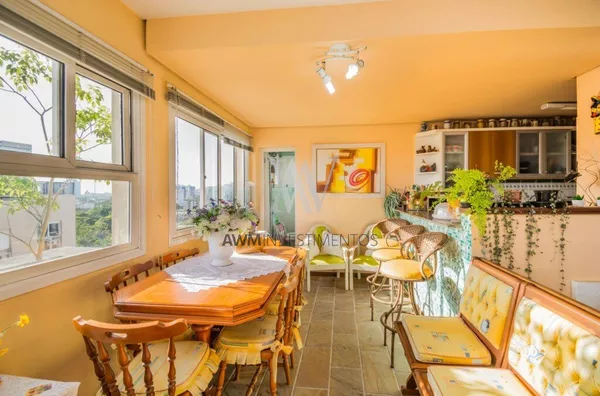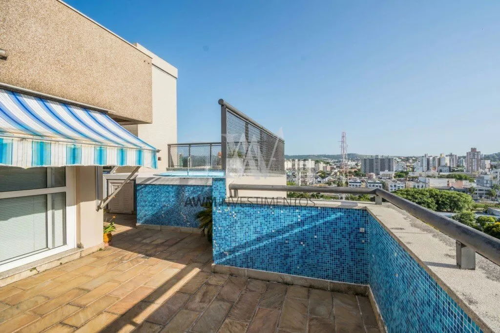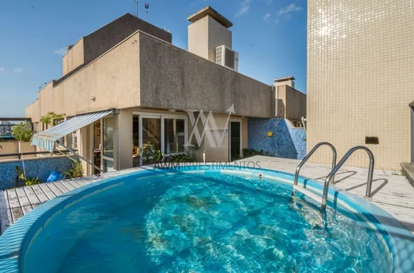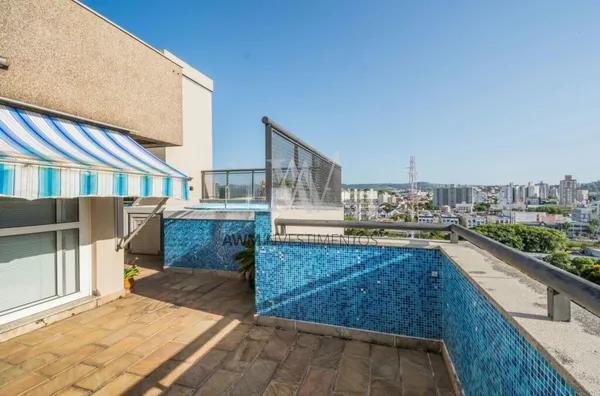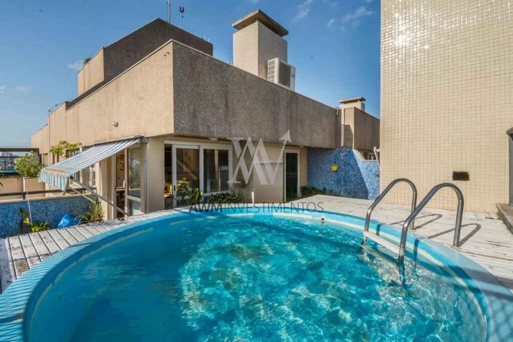 Awm Vende Cobertura com três dormitórios, uma suíte, living 2 ambientes com sacada integrada ,piso porcelanato, teto rebaixo em gesso, em todos os cômodos, vista definida , banheiro social, cozinha , área de serviço e banheiro auxiliar, no nível superior , espaço gourmet e piscina privativa, terraço posição solar Leste,