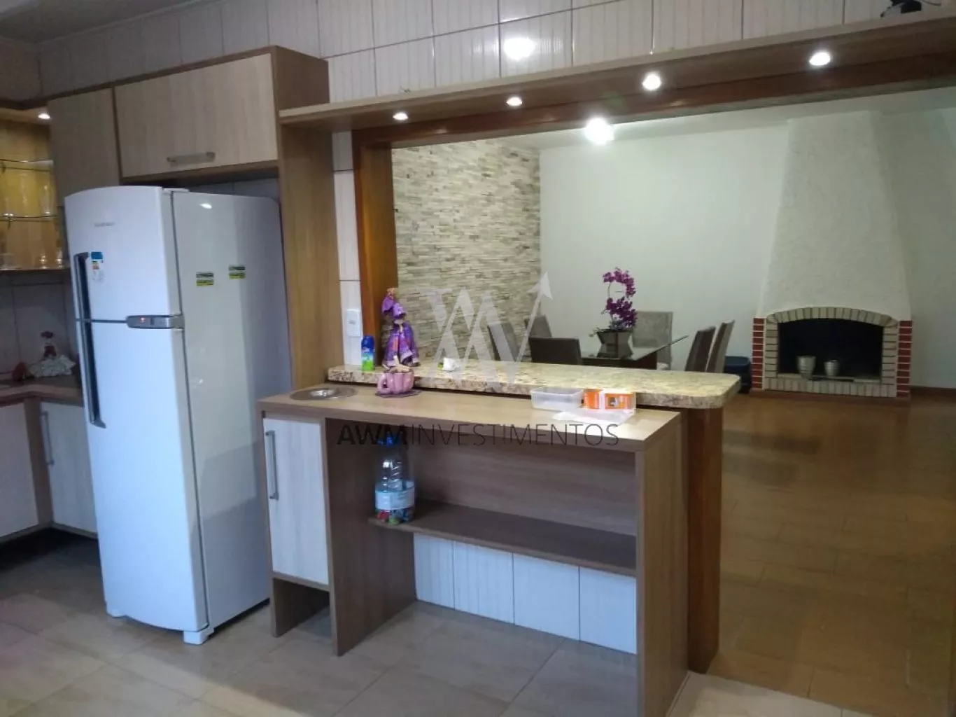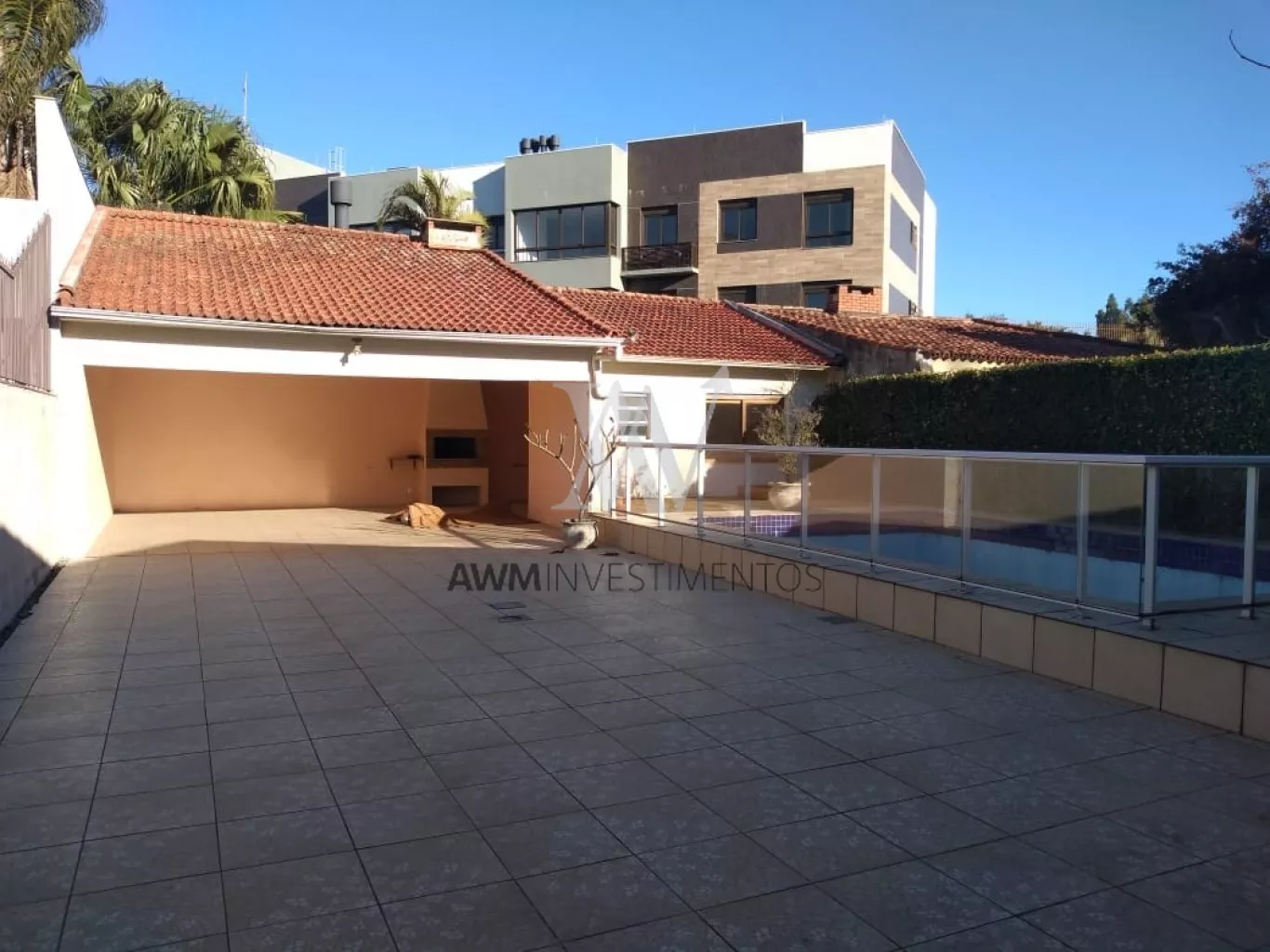 Awm Vende, casa com 240m² de área útil, 03 dormitórios sendo uma suíte living amplo com lareira, sala de estar, água quente em todos os cômodos, gabinete e lavabo, cozinha montada, despensa, garagem para três carros fechados, churrasqueira, banheiro auxiliar e lavanderia. Piscina com deck e pergolado.
