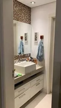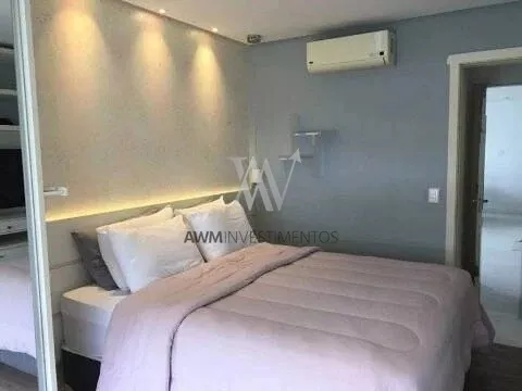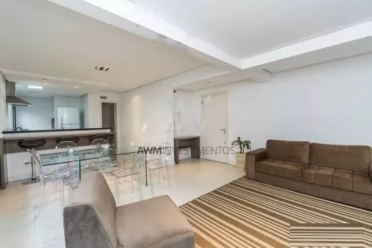 Amw Vende, Apartamento de 1 dormitório, semi mobiliado, 57m² privativos, living amplo com teto rebaixado em gesso, cozinha com churrasqueira, área de serviços individual e 1 vaga para veículo.