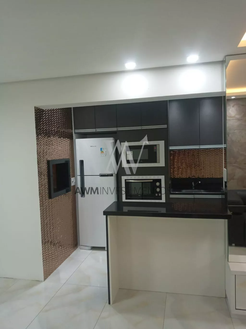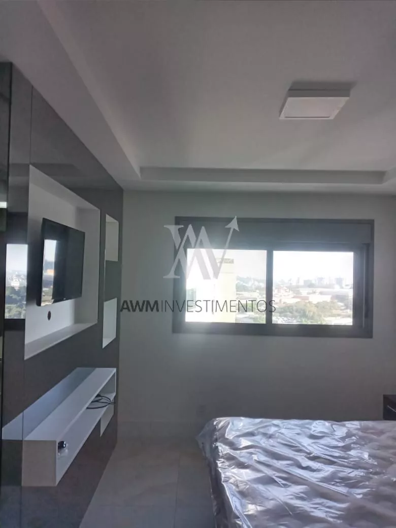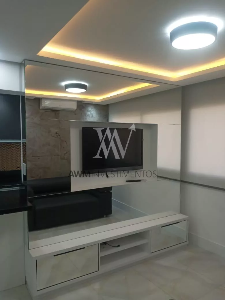 Awm Vende, Flat, transformado em 01 dormitório, closet, semi mobiliado, cozinha americana com churrasqueira, área de serviços , andar alto.